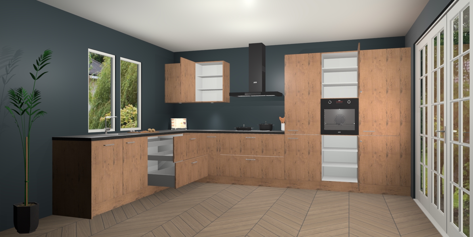 Heeft u nog apparatuur nodig? Geen probleem: de Astoria Eiken keuken Debrecen bevat vijf ingebouwde apparaten - een oven, inductiekookplaat, afzuigkap, vaatwasser en koelkast - die gemakkelijk kunnen worden bijgewerkt naar AEG na bestelling. En als dat nog niet genoeg is; onze kasten worden pre-geassembleerd geleverd en zijn verkrijgbaar tegen een vastgeroeste lage prijs! U hoeft nooit meer te zoeken naar goede kwaliteit en service want onze producten hebben echt Duitse kwaliteit.