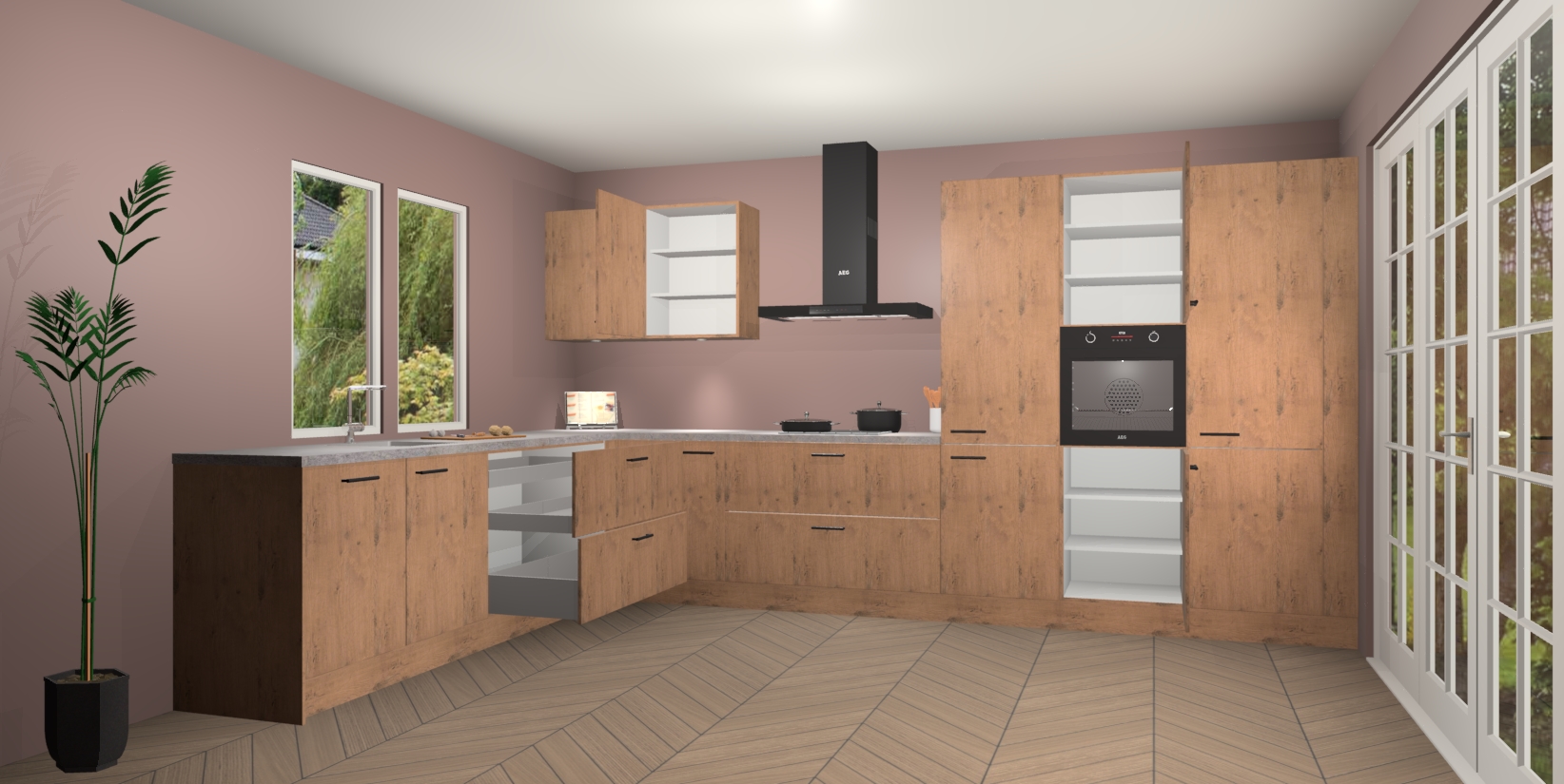 Heeft u nog apparatuur nodig? Geen probleem: de Astoria Eiken keuken Debrecen bevat vijf ingebouwde apparaten - een oven, inductiekookplaat, afzuigkap, vaatwasser en koelkast - die gemakkelijk kunnen worden bijgewerkt naar AEG na bestelling. En als dat nog niet genoeg is; onze kasten worden pre-geassembleerd geleverd en zijn verkrijgbaar tegen een vastgeroeste lage prijs! U hoeft nooit meer te zoeken naar goede kwaliteit en service want onze producten hebben echt Duitse kwaliteit.
