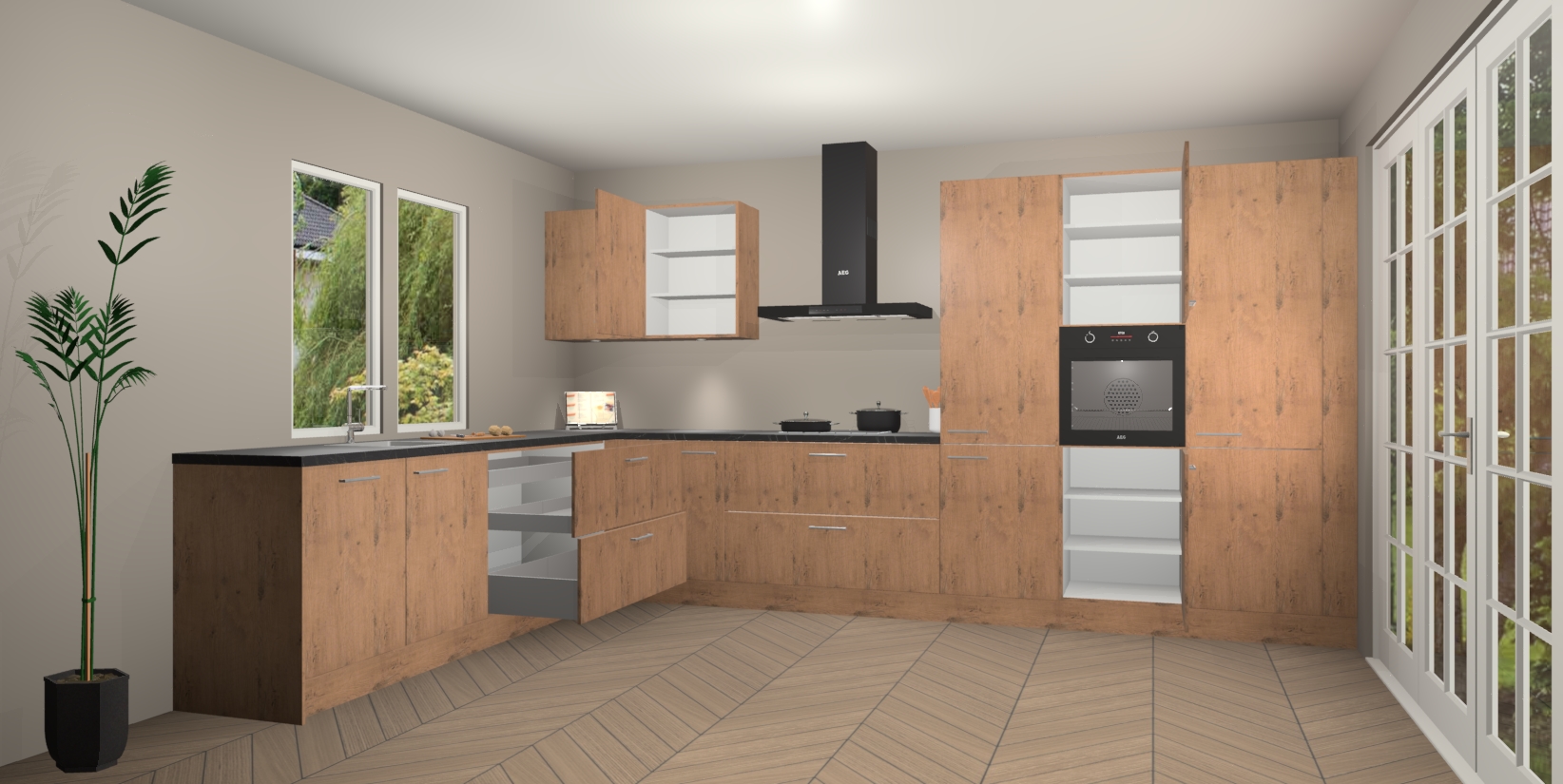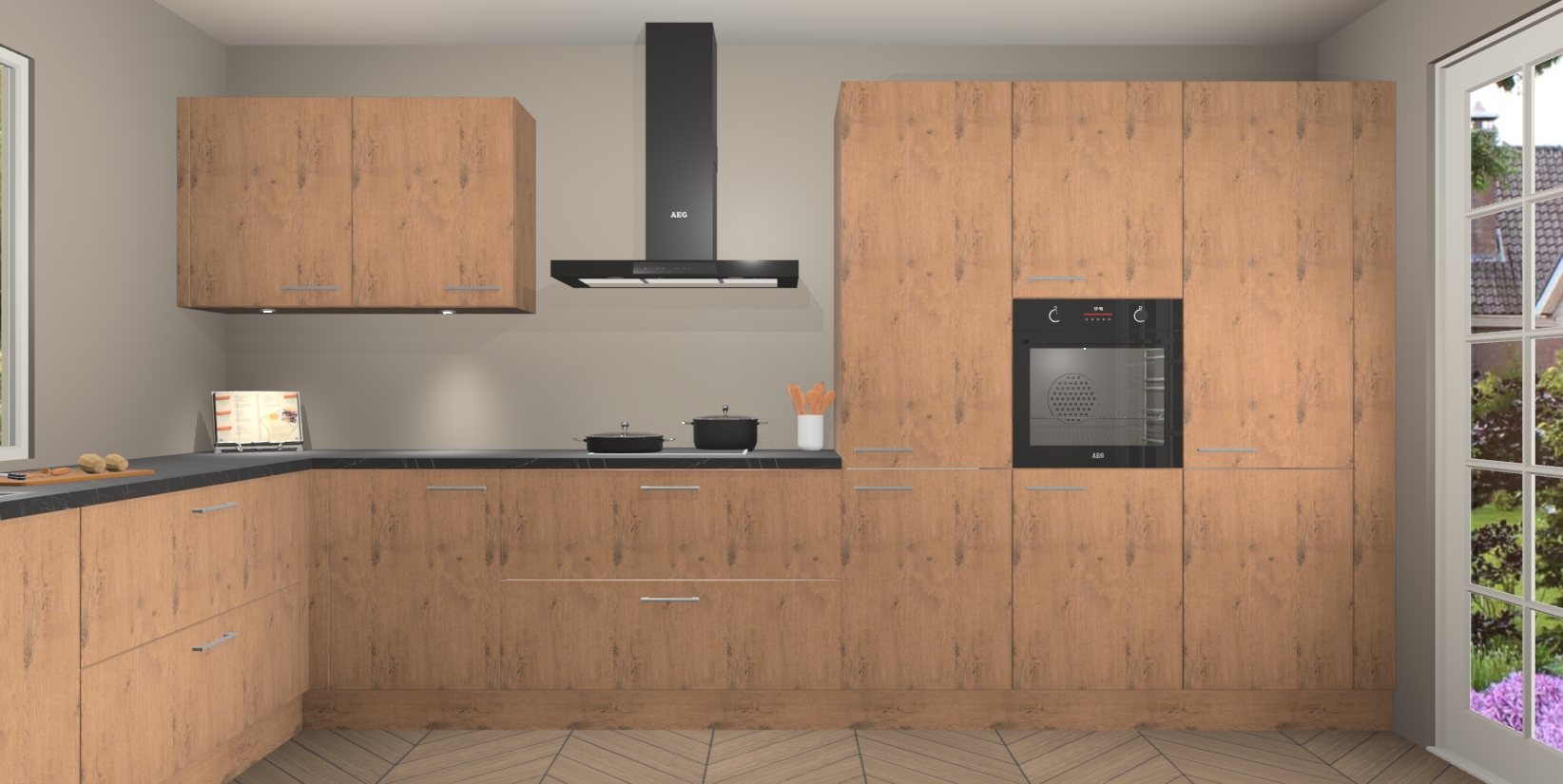 Heeft u nog apparatuur nodig? Geen probleem: de Astoria Eiken keuken Debrecen bevat vijf ingebouwde apparaten - een oven, inductiekookplaat, afzuigkap, vaatwasser en koelkast - die gemakkelijk kunnen worden bijgewerkt naar AEG na bestelling. En als dat nog niet genoeg is; onze kasten worden pre-geassembleerd geleverd en zijn verkrijgbaar tegen een vastgeroeste lage prijs! U hoeft nooit meer te zoeken naar goede kwaliteit en service want onze producten hebben echt Duitse kwaliteit.
