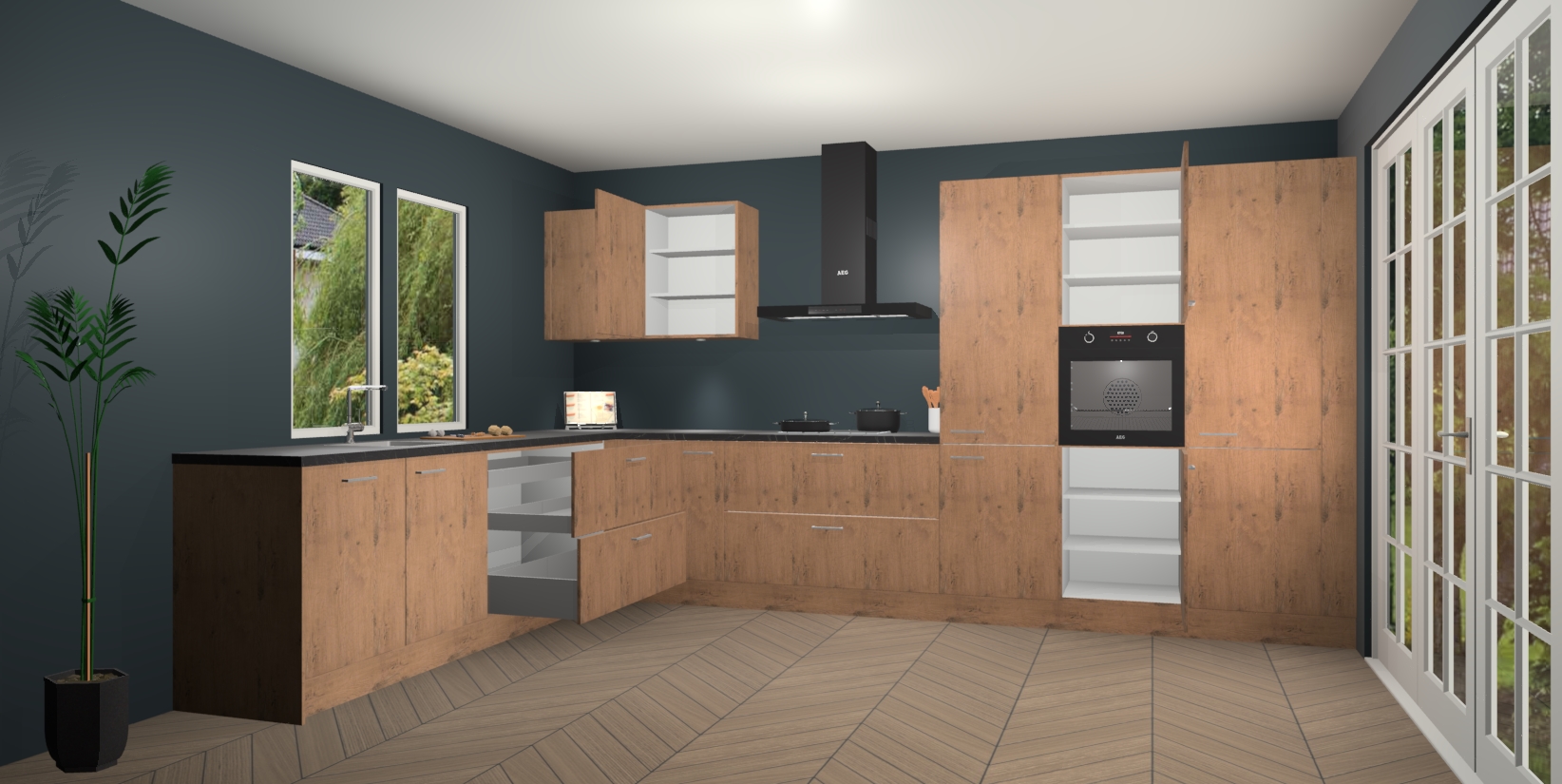 Heeft u nog apparatuur nodig? Geen probleem: de Astoria Eiken keuken Debrecen bevat vijf ingebouwde apparaten - een oven, inductiekookplaat, afzuigkap, vaatwasser en koelkast - die gemakkelijk kunnen worden bijgewerkt naar AEG na bestelling. En als dat nog niet genoeg is; onze kasten worden pre-geassembleerd geleverd en zijn verkrijgbaar tegen een vastgeroeste lage prijs! U hoeft nooit meer te zoeken naar goede kwaliteit en service want onze producten hebben echt Duitse kwaliteit.