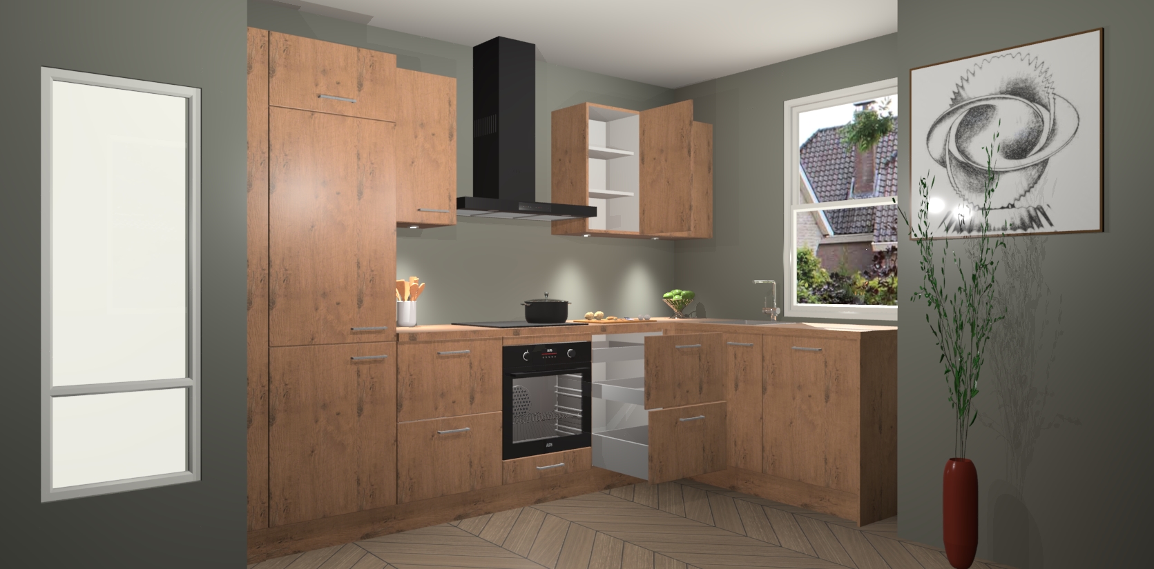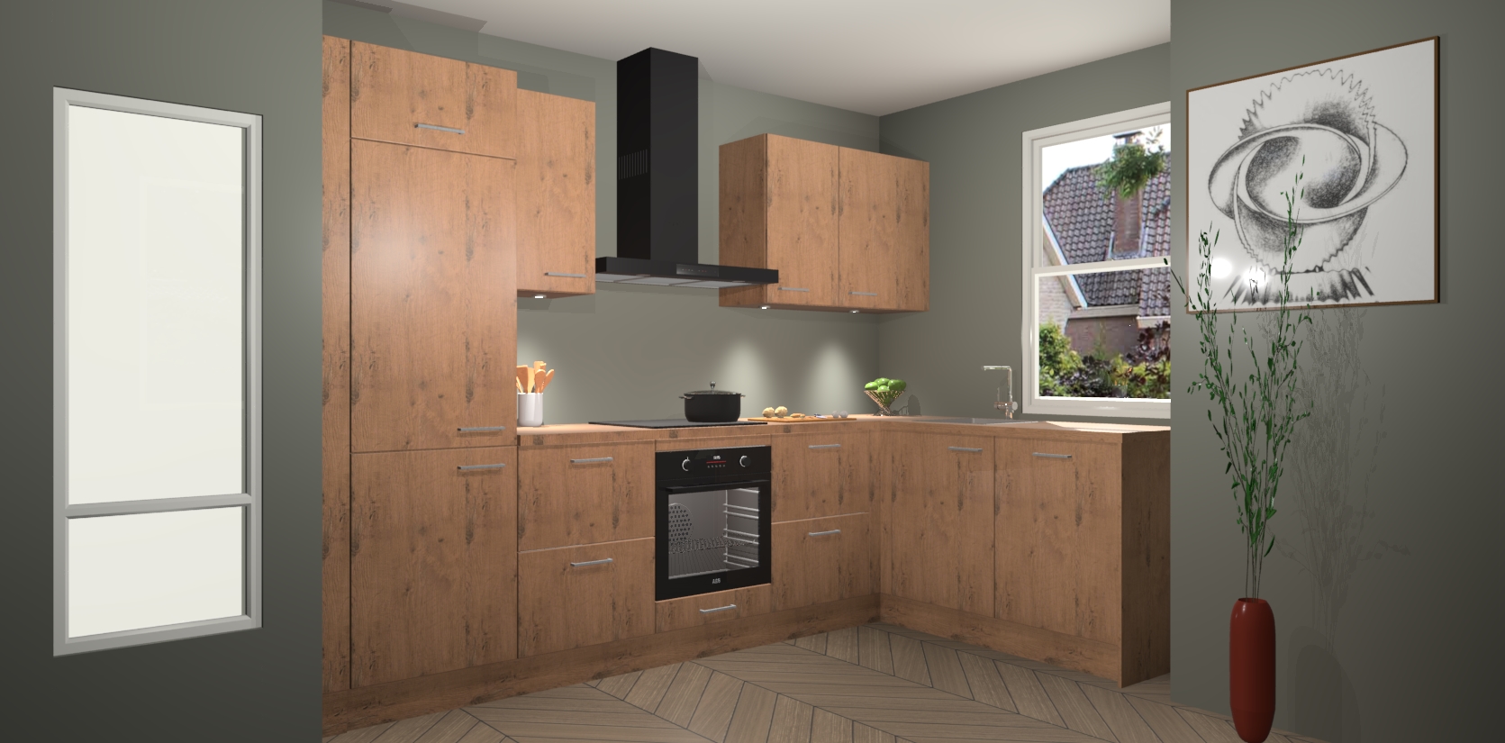 Bent u op zoek naar een moderne en tijdloze keuken die schoonheid in uw huis brengt? Zoek dan niet verder dan de Astoria Eiken keuken Geneve - de perfecte keuken voor al uw wensen. Deze hoekkeuken biedt de hoogste Duitse kwaliteit voor een vaste lage prijs en is zeker een blikvanger in uw huis!