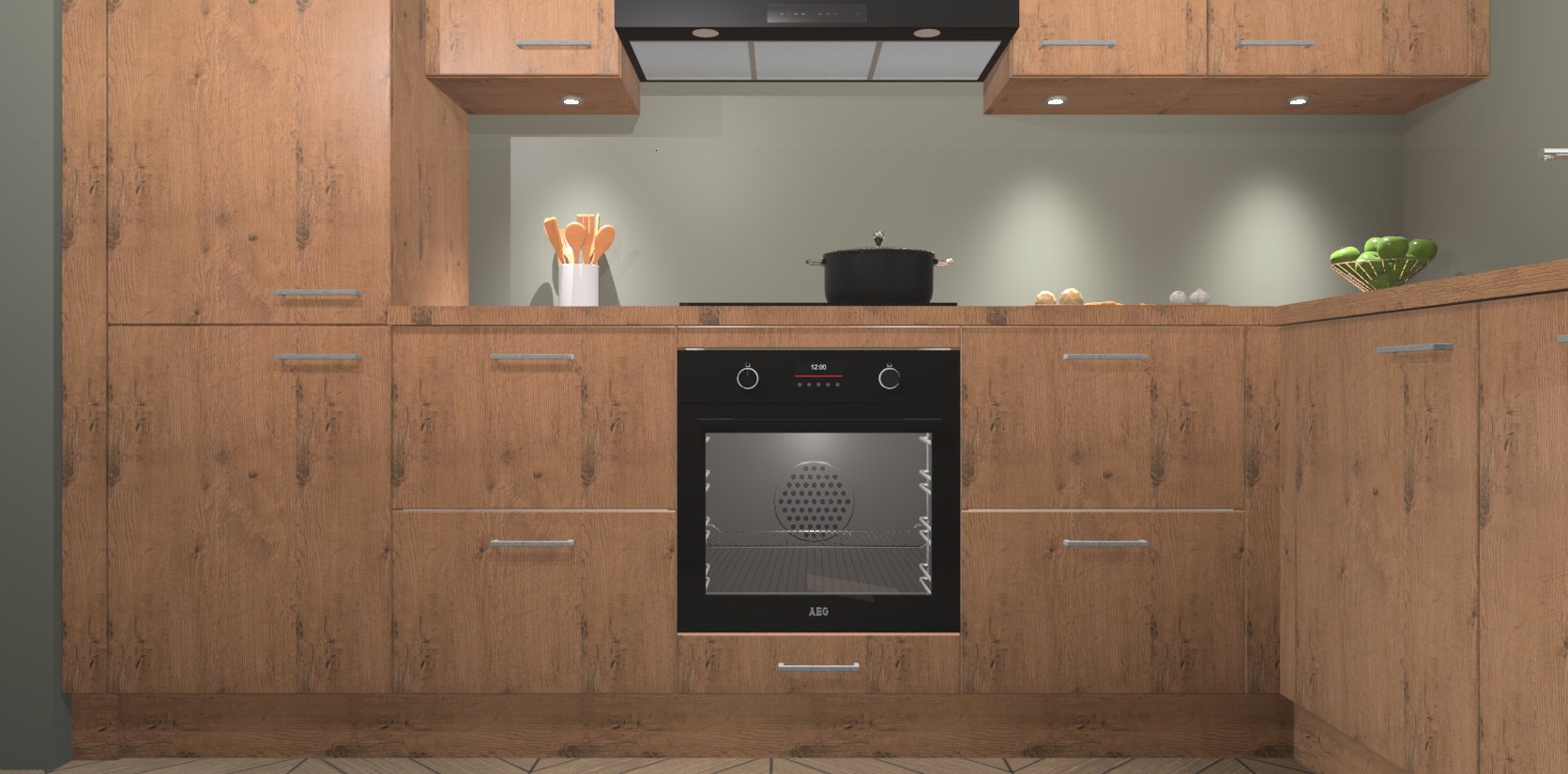 De Astoria Eiken keuken Geneve is uitgerust met 5 inbouwapparaten - een oven, inductiekookplaat, afzuigkap, vaatwasser en koelkast - voor al uw kook- en bewaarbehoeftes. U kunt deze apparaten desgewenst eenvoudig upgraden naar AEG of de oven omruilen voor een combimagnetron na het plaatsen van uw bestelling. En met de soft close deuren, voldoende opbergruimte en kasten die voorgemonteerd worden geleverd, bent u in een mum van tijd klaar om heerlijke maaltijden te bereiden!