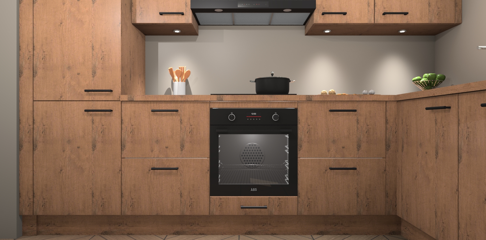 De Astoria Eiken keuken Geneve is uitgerust met 5 inbouwapparaten - een oven, inductiekookplaat, afzuigkap, vaatwasser en koelkast - voor al uw kook- en bewaarbehoeftes. U kunt deze apparaten desgewenst eenvoudig upgraden naar AEG of de oven omruilen voor een combimagnetron na het plaatsen van uw bestelling. En met de soft close deuren, voldoende opbergruimte en kasten die voorgemonteerd worden geleverd, bent u in een mum van tijd klaar om heerlijke maaltijden te bereiden!
