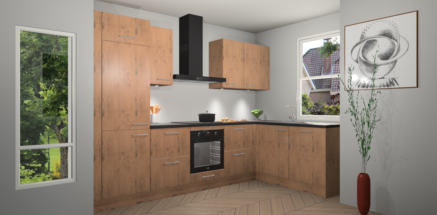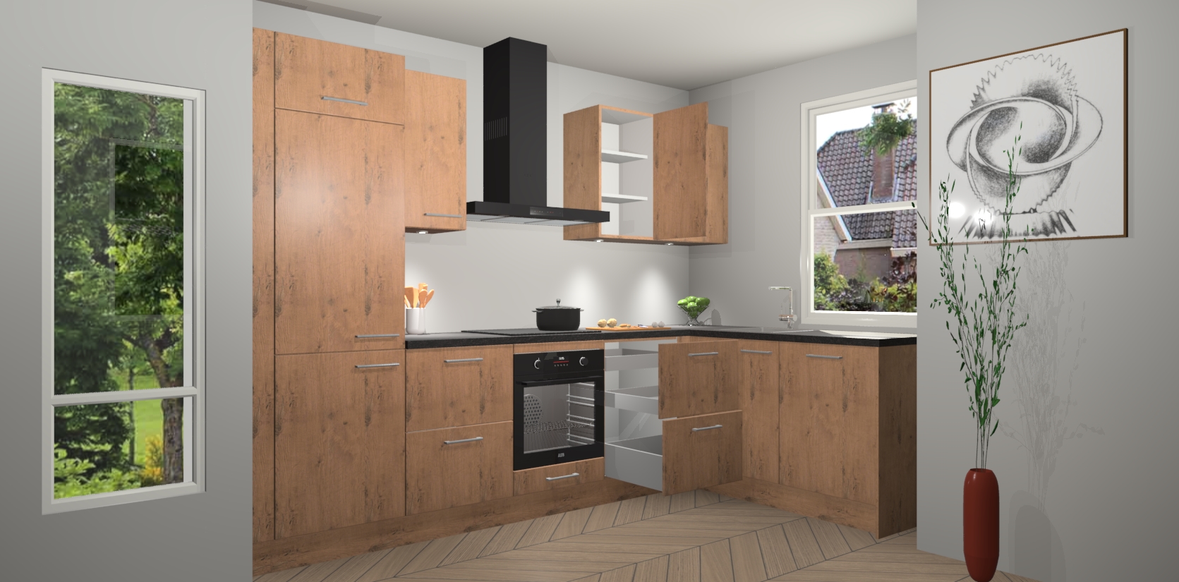 Bent u op zoek naar een moderne en tijdloze keuken die schoonheid in uw huis brengt? Zoek dan niet verder dan de Astoria Eiken keuken Geneve - de perfecte keuken voor al uw wensen. Deze hoekkeuken biedt de hoogste Duitse kwaliteit voor een vaste lage prijs en is zeker een blikvanger in uw huis!