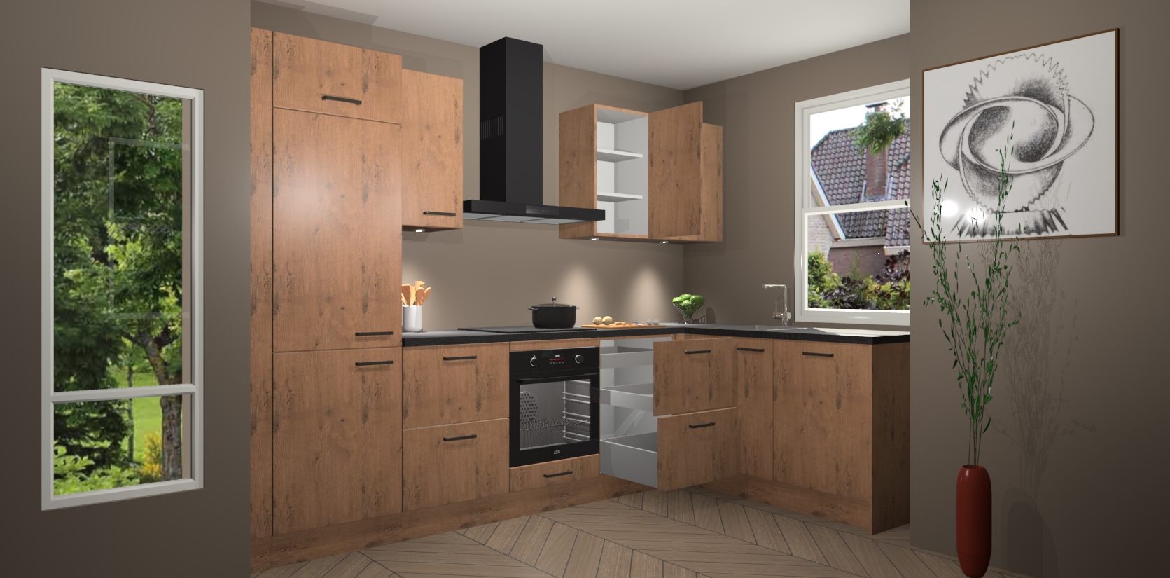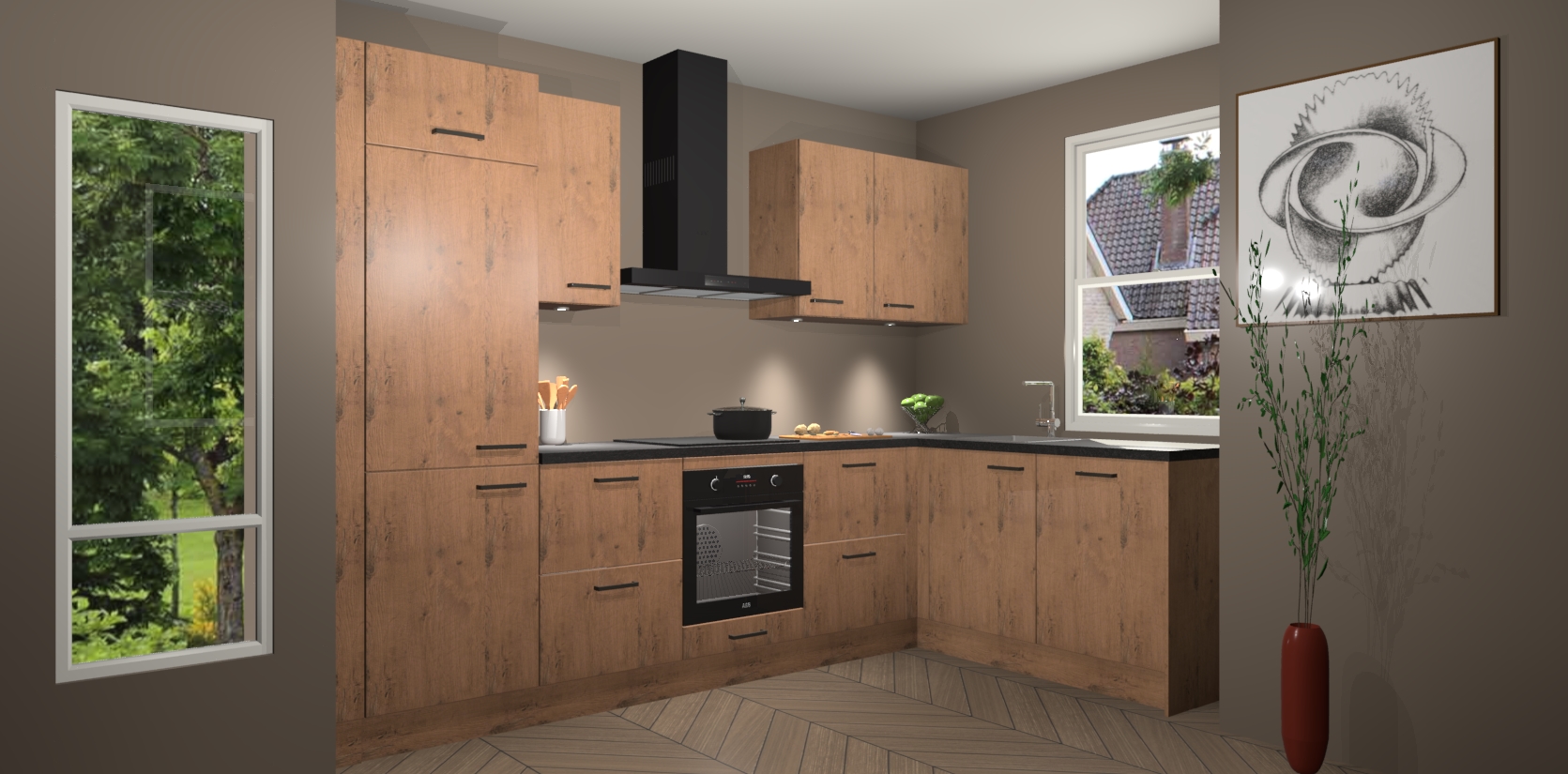 Bent u op zoek naar een moderne en tijdloze keuken die schoonheid in uw huis brengt? Zoek dan niet verder dan de Astoria Eiken keuken Geneve - de perfecte keuken voor al uw wensen. Deze hoekkeuken biedt de hoogste Duitse kwaliteit voor een vaste lage prijs en is zeker een blikvanger in uw huis!