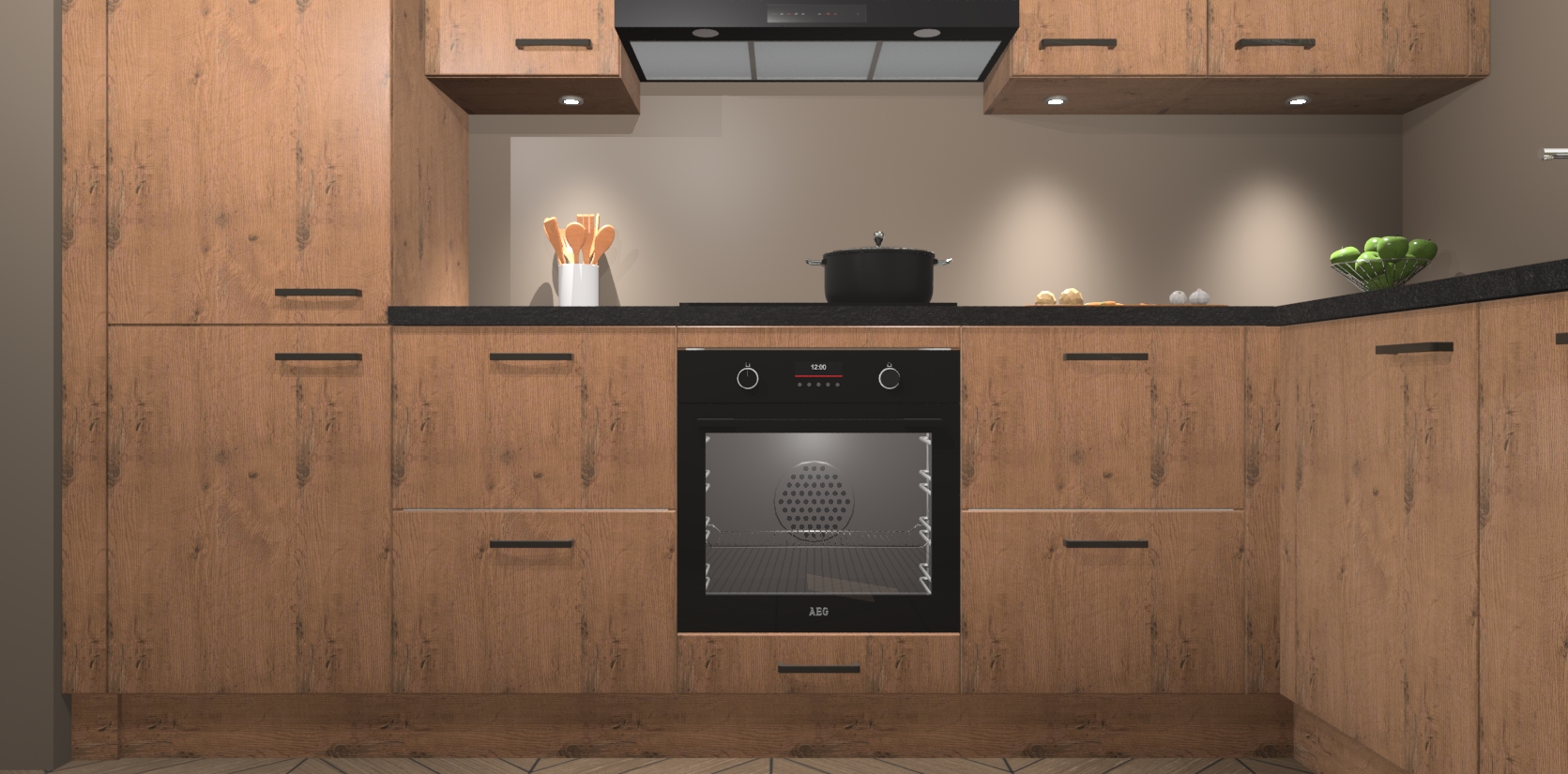 De Astoria Eiken keuken Geneve is uitgerust met 5 inbouwapparaten - een oven, inductiekookplaat, afzuigkap, vaatwasser en koelkast - voor al uw kook- en bewaarbehoeftes. U kunt deze apparaten desgewenst eenvoudig upgraden naar AEG of de oven omruilen voor een combimagnetron na het plaatsen van uw bestelling. En met de soft close deuren, voldoende opbergruimte en kasten die voorgemonteerd worden geleverd, bent u in een mum van tijd klaar om heerlijke maaltijden te bereiden!