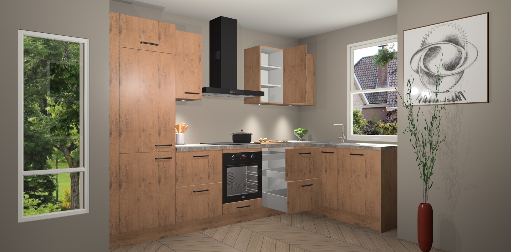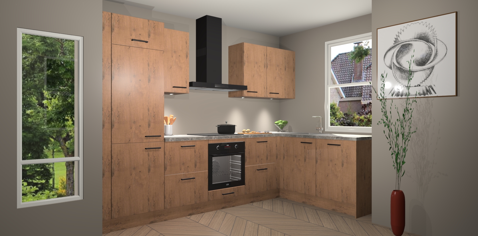 Bent u op zoek naar een moderne en tijdloze keuken die schoonheid in uw huis brengt? Zoek dan niet verder dan de Astoria Eiken keuken Geneve - de perfecte keuken voor al uw wensen. Deze hoekkeuken biedt de hoogste Duitse kwaliteit voor een vaste lage prijs en is zeker een blikvanger in uw huis!