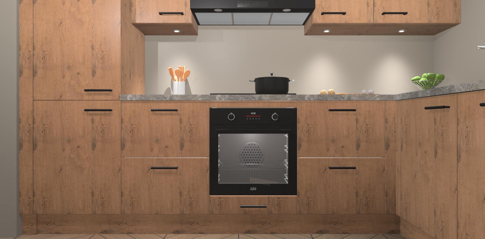 De Astoria Eiken keuken Geneve is uitgerust met 5 inbouwapparaten - een oven, inductiekookplaat, afzuigkap, vaatwasser en koelkast - voor al uw kook- en bewaarbehoeftes. U kunt deze apparaten desgewenst eenvoudig upgraden naar AEG of de oven omruilen voor een combimagnetron na het plaatsen van uw bestelling. En met de soft close deuren, voldoende opbergruimte en kasten die voorgemonteerd worden geleverd, bent u in een mum van tijd klaar om heerlijke maaltijden te bereiden!