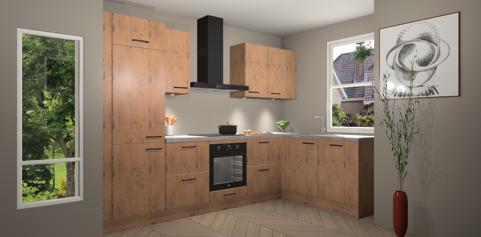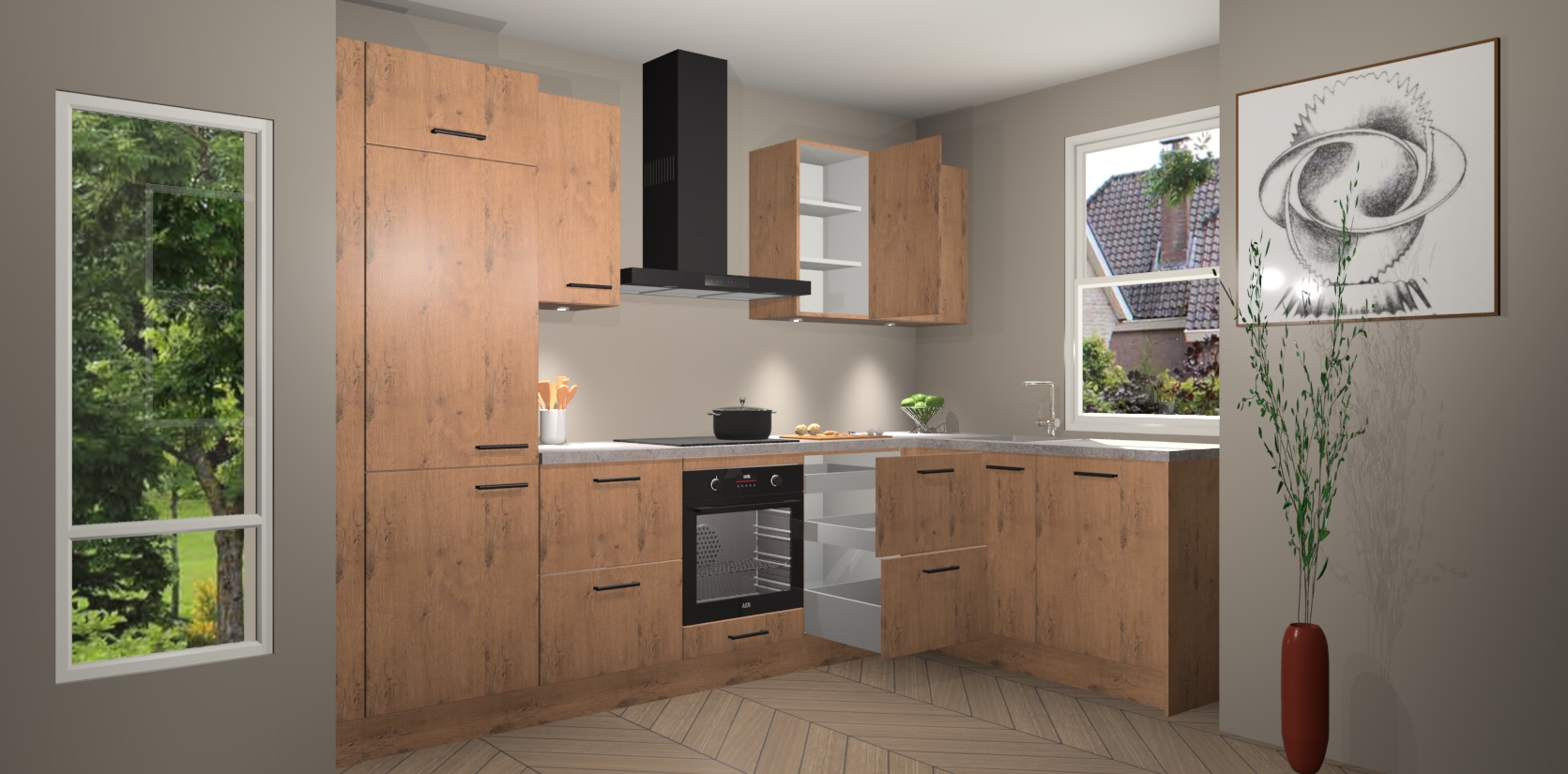 Bent u op zoek naar een moderne en tijdloze keuken die schoonheid in uw huis brengt? Zoek dan niet verder dan de Astoria Eiken keuken Geneve - de perfecte keuken voor al uw wensen. Deze hoekkeuken biedt de hoogste Duitse kwaliteit voor een vaste lage prijs en is zeker een blikvanger in uw huis!
