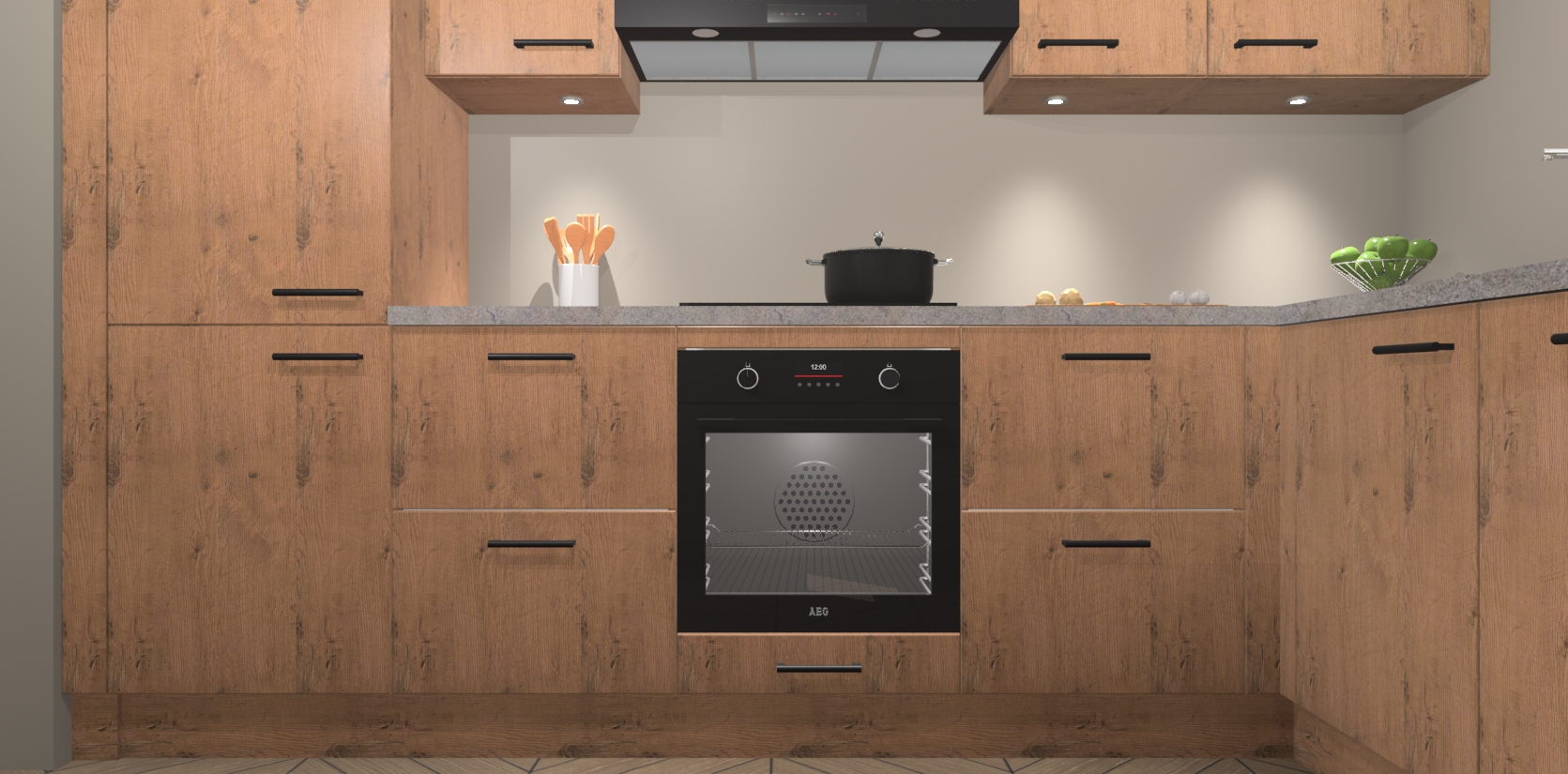De Astoria Eiken keuken Geneve is uitgerust met 5 inbouwapparaten - een oven, inductiekookplaat, afzuigkap, vaatwasser en koelkast - voor al uw kook- en bewaarbehoeftes. U kunt deze apparaten desgewenst eenvoudig upgraden naar AEG of de oven omruilen voor een combimagnetron na het plaatsen van uw bestelling. En met de soft close deuren, voldoende opbergruimte en kasten die voorgemonteerd worden geleverd, bent u in een mum van tijd klaar om heerlijke maaltijden te bereiden!