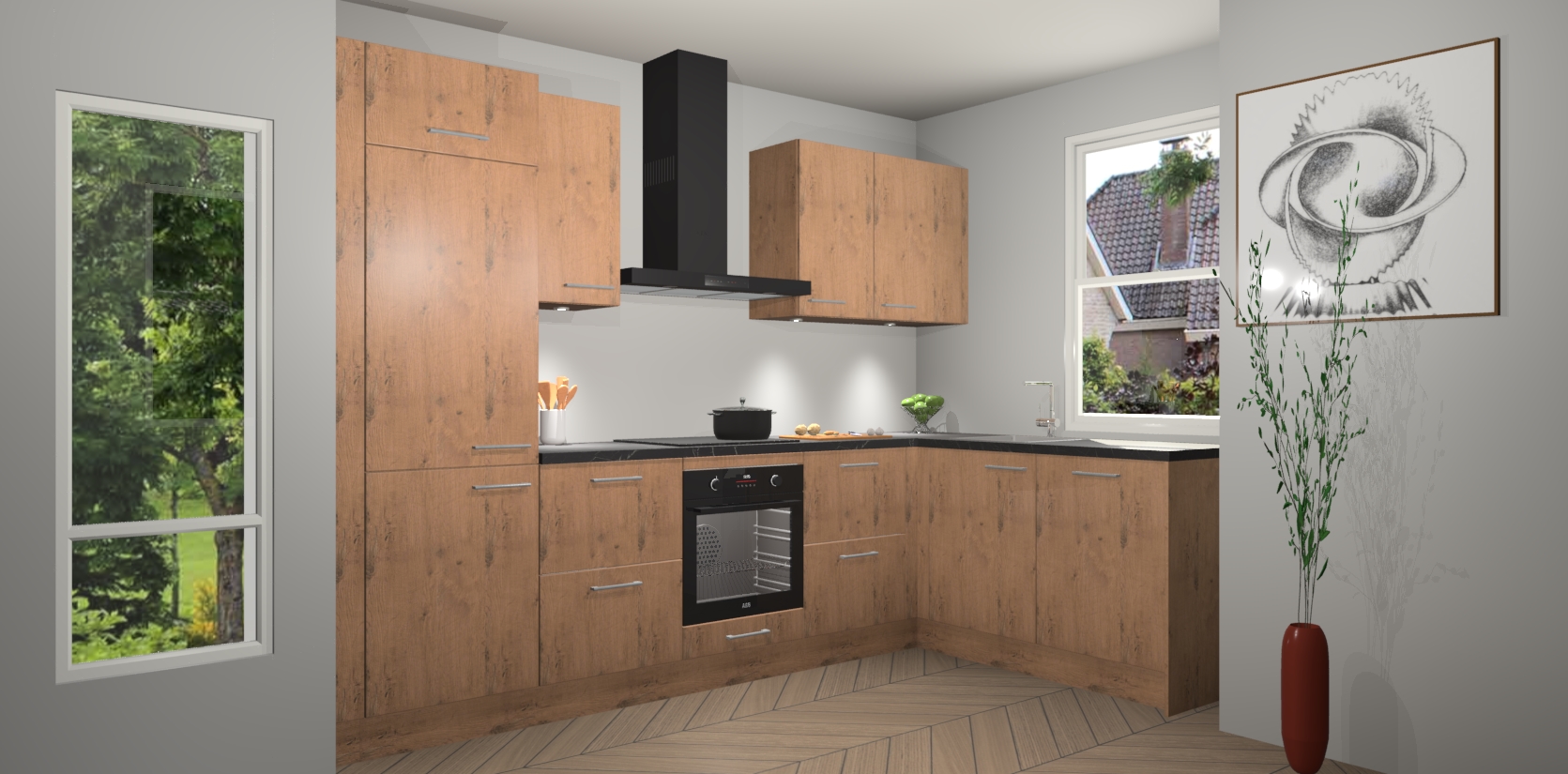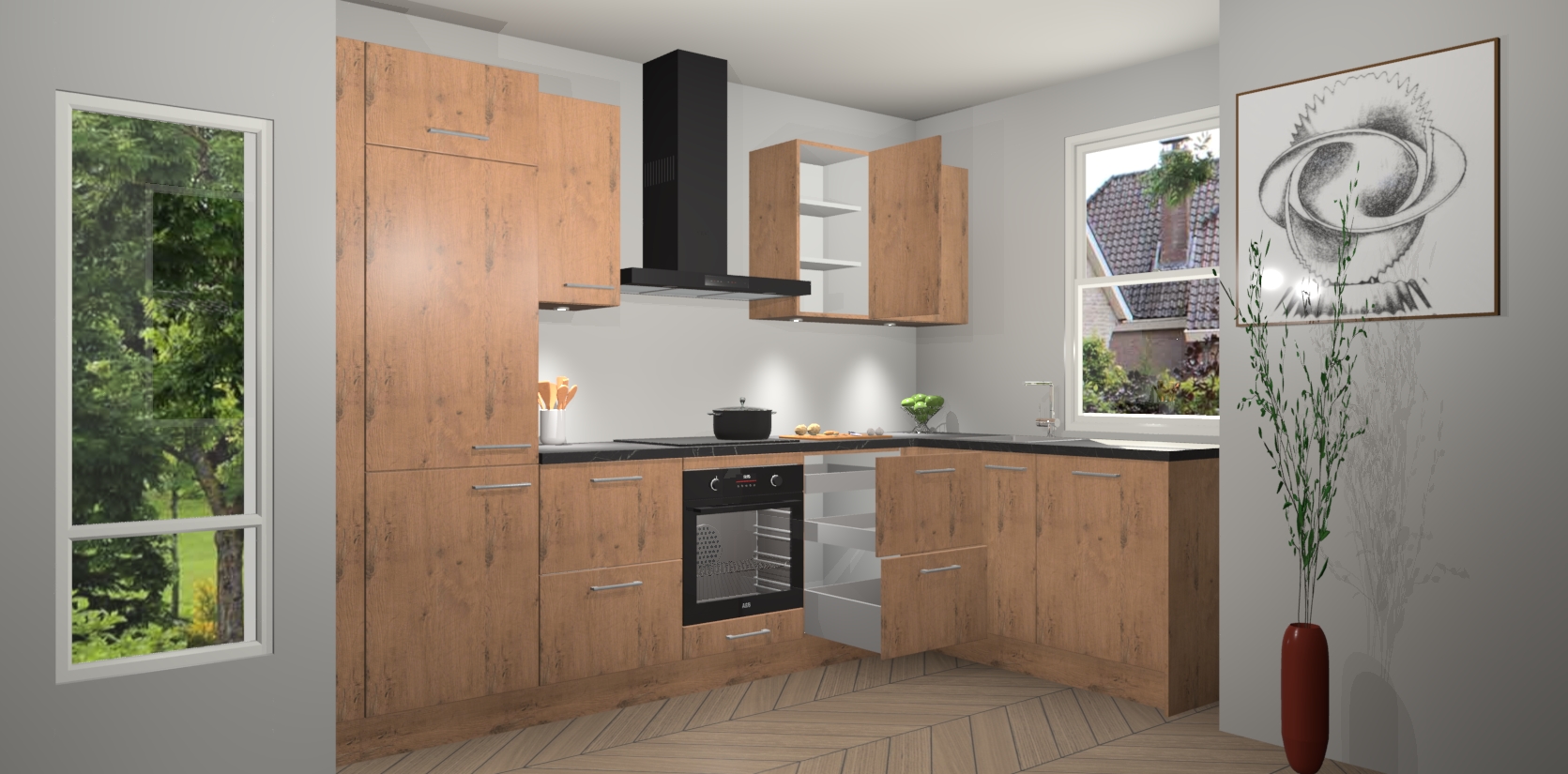 Bent u op zoek naar een moderne en tijdloze keuken die schoonheid in uw huis brengt? Zoek dan niet verder dan de Astoria Eiken keuken Geneve - de perfecte keuken voor al uw wensen. Deze hoekkeuken biedt de hoogste Duitse kwaliteit voor een vaste lage prijs en is zeker een blikvanger in uw huis!