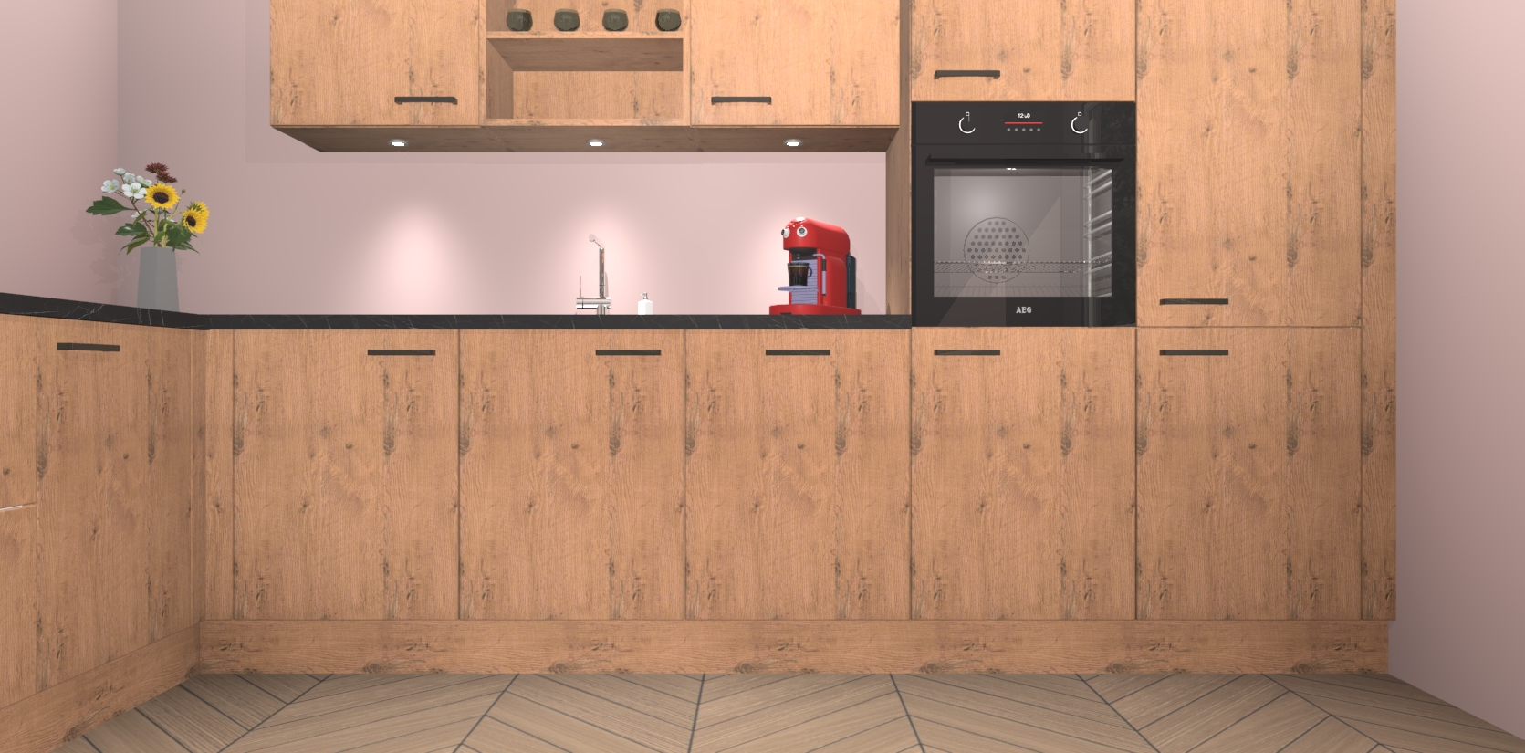 Inclusief plinten, stelpoten en werkblad