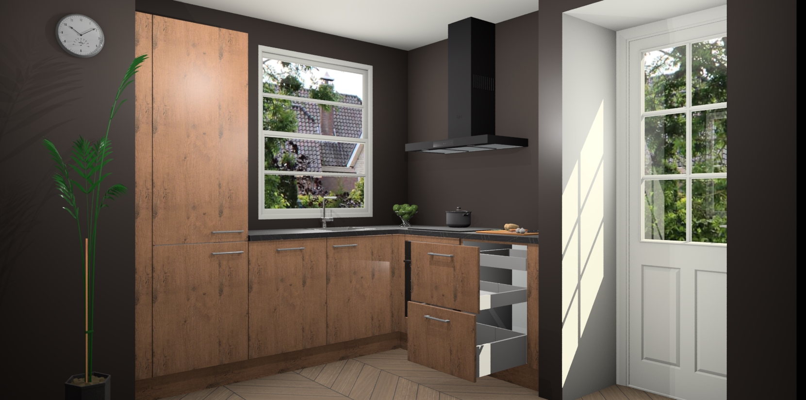 Wilt u een echte aanwinst voor uw keuken, maar bent u op zoek naar iets specialers dan de standaardkeukens? Kies dan voor de Astoria Eiken keuken Harbin! Dit prachtige hoekkeukenontwerp geeft u alle ruimte om optimaal te genieten van heerlijk koken. Het uitmuntende afwerkingsniveau, de fraaie houtstructuur en de sfeervolle zwarte grepen maken van de Astoria Eiken keuken Harbin de perfecte keuze voor zowel enthousiaste thuiskoks als design-minded interieurliefhebbers.