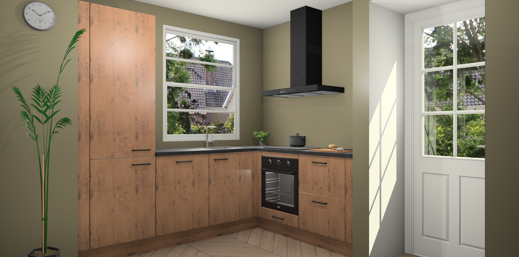 Wilt u een echte aanwinst voor uw keuken, maar bent u op zoek naar iets specialers dan de standaardkeukens? Kies dan voor de Astoria Eiken keuken Harbin! Dit prachtige hoekkeukenontwerp geeft u alle ruimte om optimaal te genieten van heerlijk koken. Het uitmuntende afwerkingsniveau, de fraaie houtstructuur en de sfeervolle zwarte grepen maken van de Astoria Eiken keuken Harbin de perfecte keuze voor zowel enthousiaste thuiskoks als design-minded interieurliefhebbers.