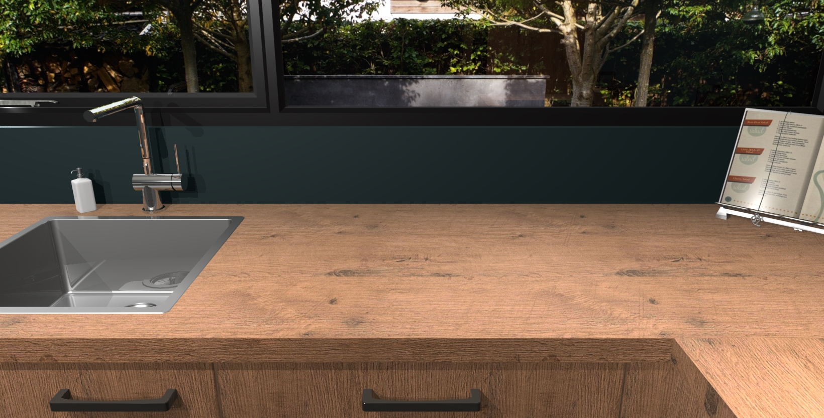 • Bij een hoekwerkblad zijn de hoeken in gevreesd en op maat gemaakt