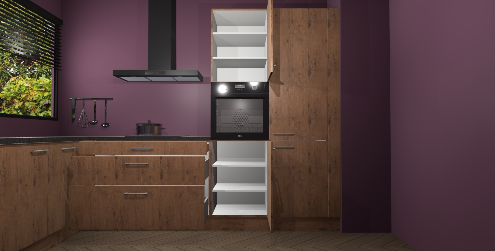 Met een modern, tijdloos design en ruime opslagruimte, zult u zich in no-time thuis voelen in uw nieuwe keuken. Uw leven wordt eenvoudiger met de soft-close deuren die voor het ultieme stille comfort zorgen - geen geluid dat u stoort terwijl u kookt. Ook is de keuken voorzien van 5 ingebouwde apparaten: een oven, inductie kookplaat, afzuigkap, vaatwasser en koelkast. Deze kunnen gemakkelijk na bestelling worden bijgewerkt naar AEG - waardoor uw luxe ervaring compleet is.