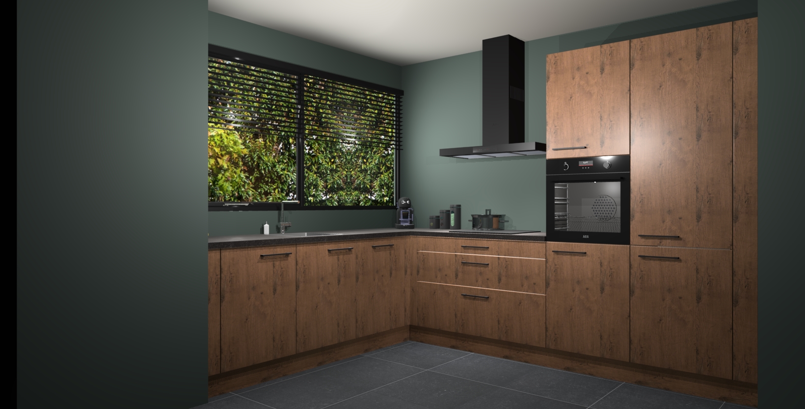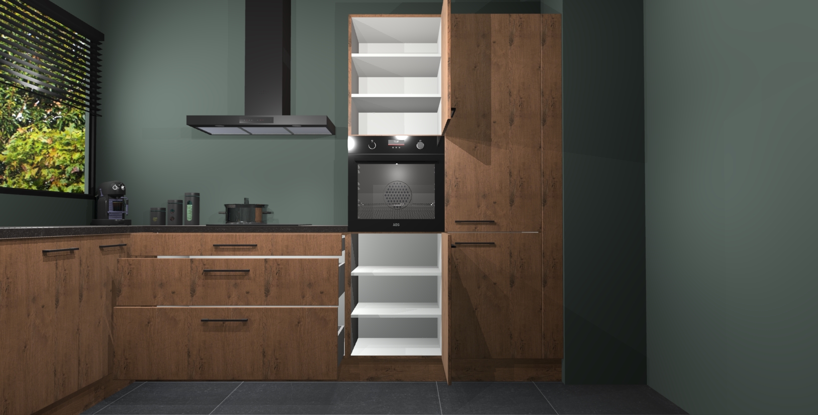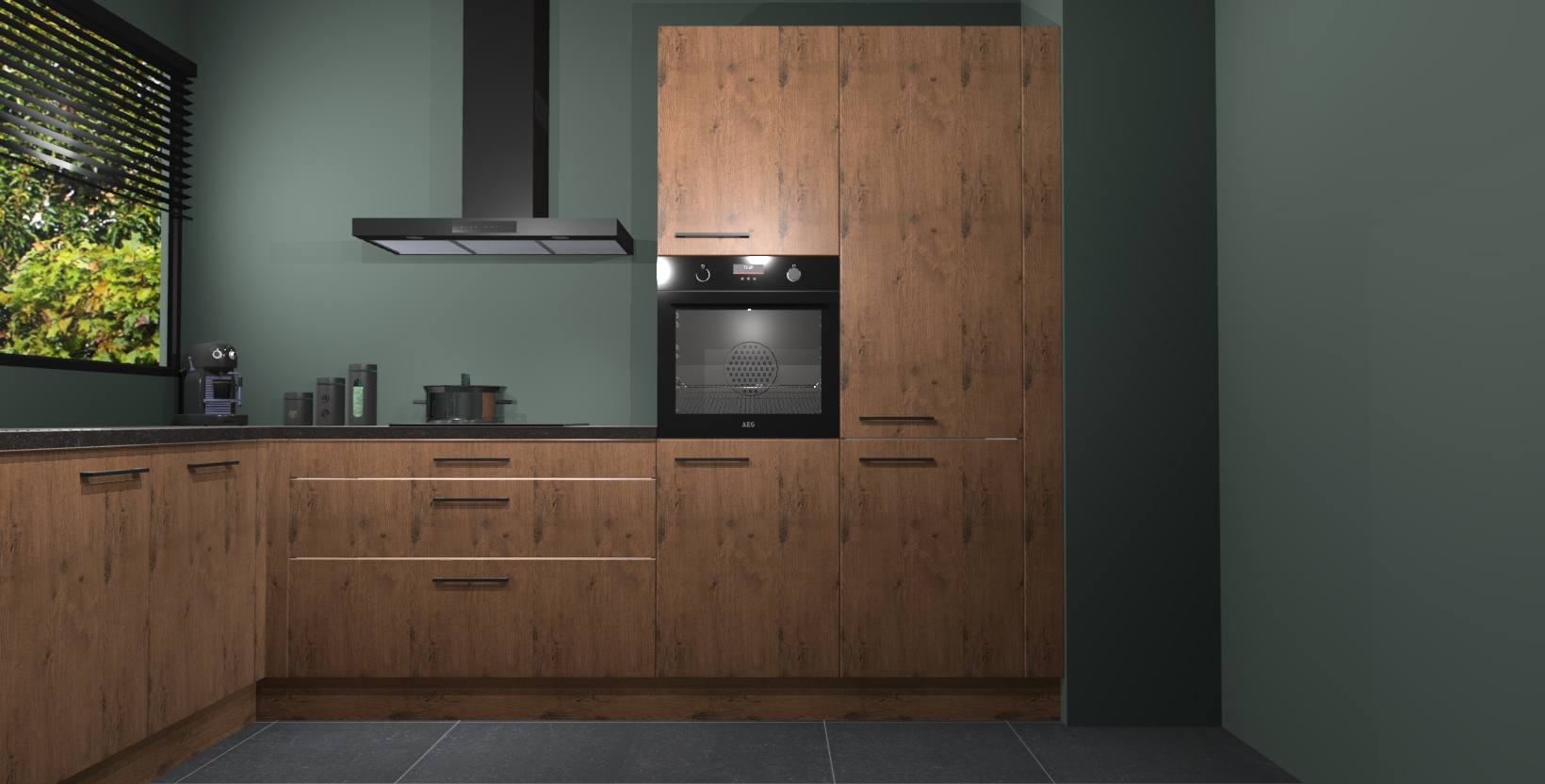 Met een modern, tijdloos design en ruime opslagruimte, zult u zich in no-time thuis voelen in uw nieuwe keuken. Uw leven wordt eenvoudiger met de soft-close deuren die voor het ultieme stille comfort zorgen - geen geluid dat u stoort terwijl u kookt. Ook is de keuken voorzien van 5 ingebouwde apparaten: een oven, inductie kookplaat, afzuigkap, vaatwasser en koelkast. Deze kunnen gemakkelijk na bestelling worden bijgewerkt naar AEG - waardoor uw luxe ervaring compleet is.