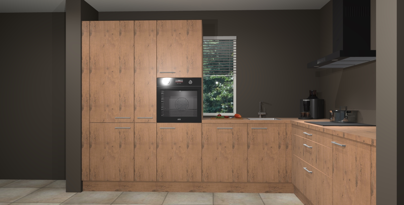 Met een modern, tijdloos design en ruime opslagruimte, zult u zich in no-time thuis voelen in uw nieuwe keuken. Uw leven wordt eenvoudiger met de soft-close deuren die voor het ultieme stille comfort zorgen - geen geluid dat u stoort terwijl u kookt. Ook is de keuken voorzien van 5 ingebouwde apparaten: een oven, inductie kookplaat, afzuigkap, vaatwasser en koelkast. Deze kunnen gemakkelijk na bestelling worden bijgewerkt naar AEG - waardoor uw luxe ervaring compleet is.