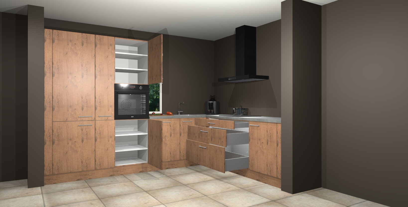 Hoekonderkast met le-mans systeem