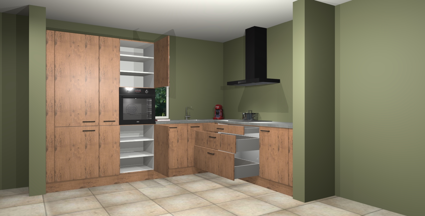 Hoekonderkast met le-mans systeem