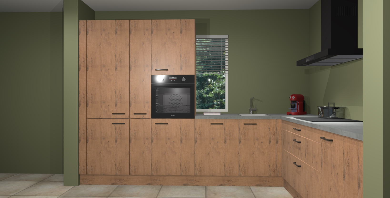 Met een modern, tijdloos design en ruime opslagruimte, zult u zich in no-time thuis voelen in uw nieuwe keuken. Uw leven wordt eenvoudiger met de soft-close deuren die voor het ultieme stille comfort zorgen - geen geluid dat u stoort terwijl u kookt. Ook is de keuken voorzien van 5 ingebouwde apparaten: een oven, inductie kookplaat, afzuigkap, vaatwasser en koelkast. Deze kunnen gemakkelijk na bestelling worden bijgewerkt naar AEG - waardoor uw luxe ervaring compleet is.