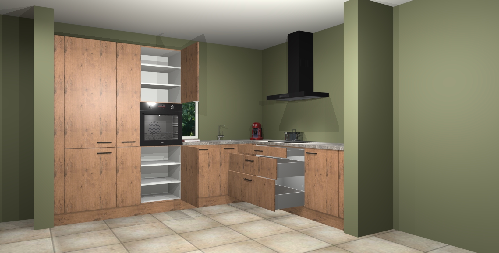 Hoekonderkast met le-mans systeem
