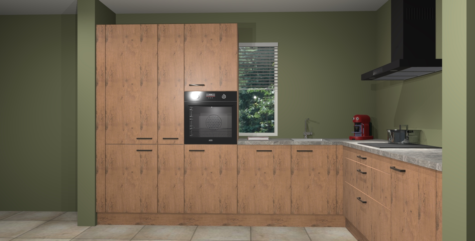 Met een modern, tijdloos design en ruime opslagruimte, zult u zich in no-time thuis voelen in uw nieuwe keuken. Uw leven wordt eenvoudiger met de soft-close deuren die voor het ultieme stille comfort zorgen - geen geluid dat u stoort terwijl u kookt. Ook is de keuken voorzien van 5 ingebouwde apparaten: een oven, inductie kookplaat, afzuigkap, vaatwasser en koelkast. Deze kunnen gemakkelijk na bestelling worden bijgewerkt naar AEG - waardoor uw luxe ervaring compleet is.