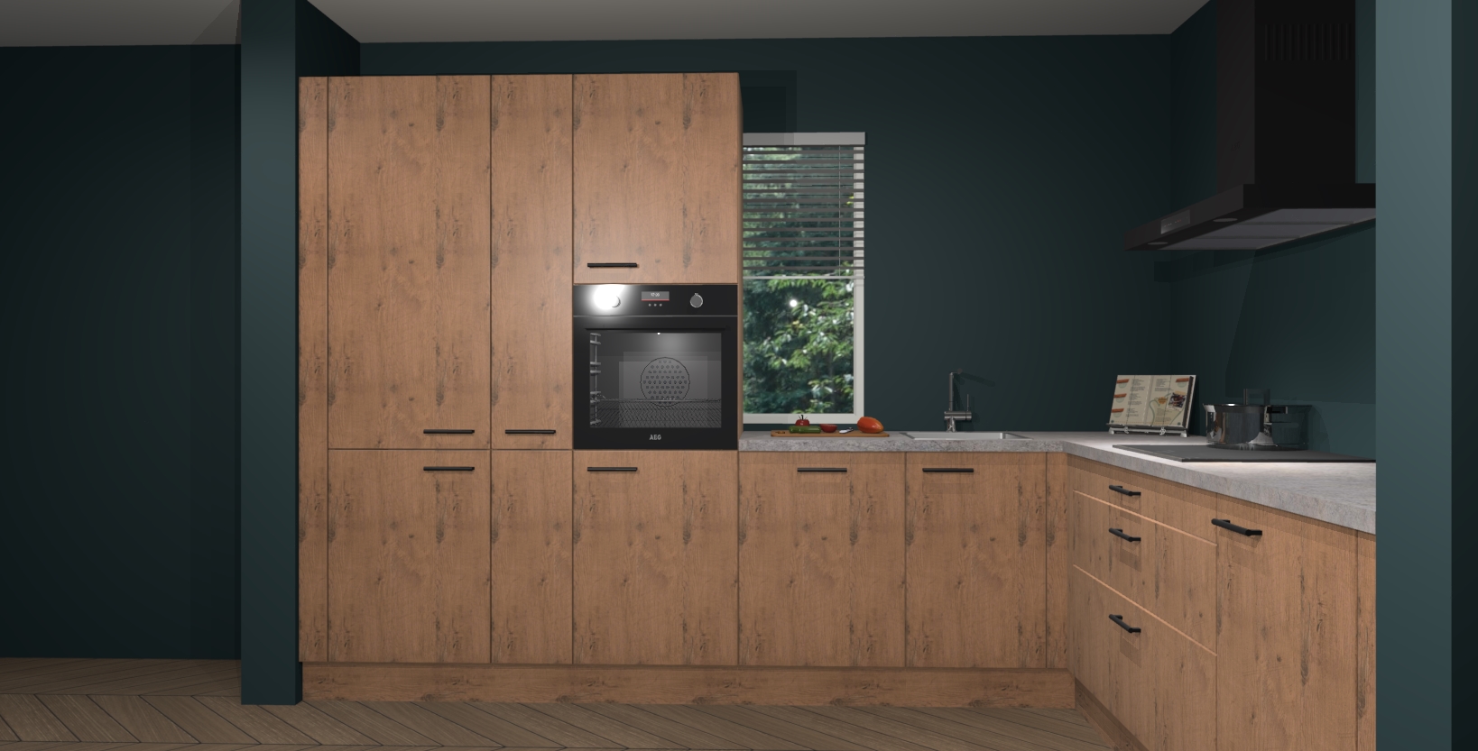Met een modern, tijdloos design en ruime opslagruimte, zult u zich in no-time thuis voelen in uw nieuwe keuken. Uw leven wordt eenvoudiger met de soft-close deuren die voor het ultieme stille comfort zorgen - geen geluid dat u stoort terwijl u kookt. Ook is de keuken voorzien van 5 ingebouwde apparaten: een oven, inductie kookplaat, afzuigkap, vaatwasser en koelkast. Deze kunnen gemakkelijk na bestelling worden bijgewerkt naar AEG - waardoor uw luxe ervaring compleet is.