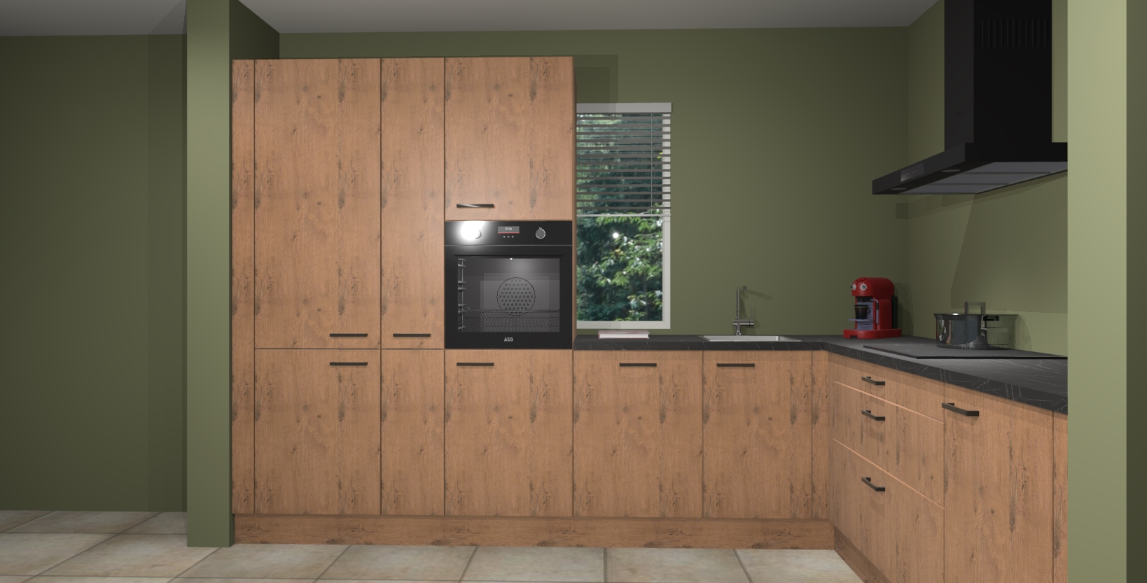Met een modern, tijdloos design en ruime opslagruimte, zult u zich in no-time thuis voelen in uw nieuwe keuken. Uw leven wordt eenvoudiger met de soft-close deuren die voor het ultieme stille comfort zorgen - geen geluid dat u stoort terwijl u kookt. Ook is de keuken voorzien van 5 ingebouwde apparaten: een oven, inductie kookplaat, afzuigkap, vaatwasser en koelkast. Deze kunnen gemakkelijk na bestelling worden bijgewerkt naar AEG - waardoor uw luxe ervaring compleet is.
