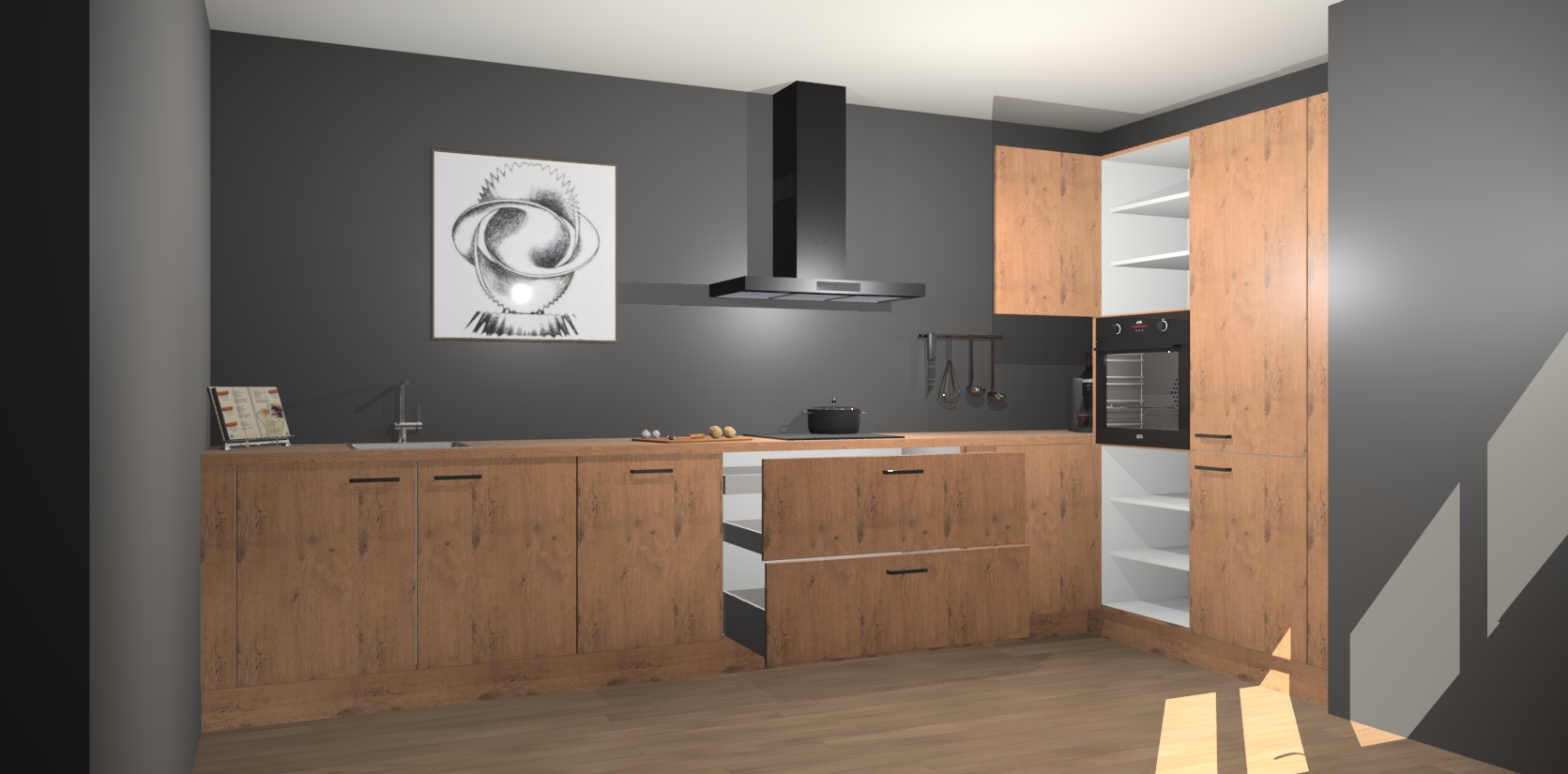 Welkom bij de Astoria Eiken keuken Khao Lak. Deze prachtige keuken zal de komende jaren het middelpunt van de belangstelling in uw huis zijn. Uitgerust met vijf inbouwapparaten komt u nooit kookgereedschap tekort. Bovendien geeft de warme houtlook elke ruimte een uitnodigende en tijdloze uitstraling.