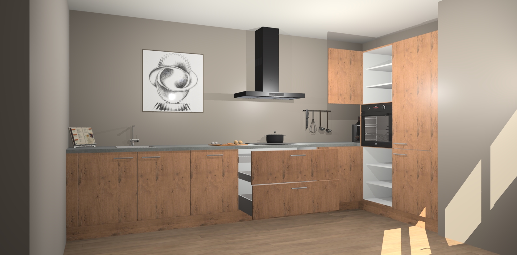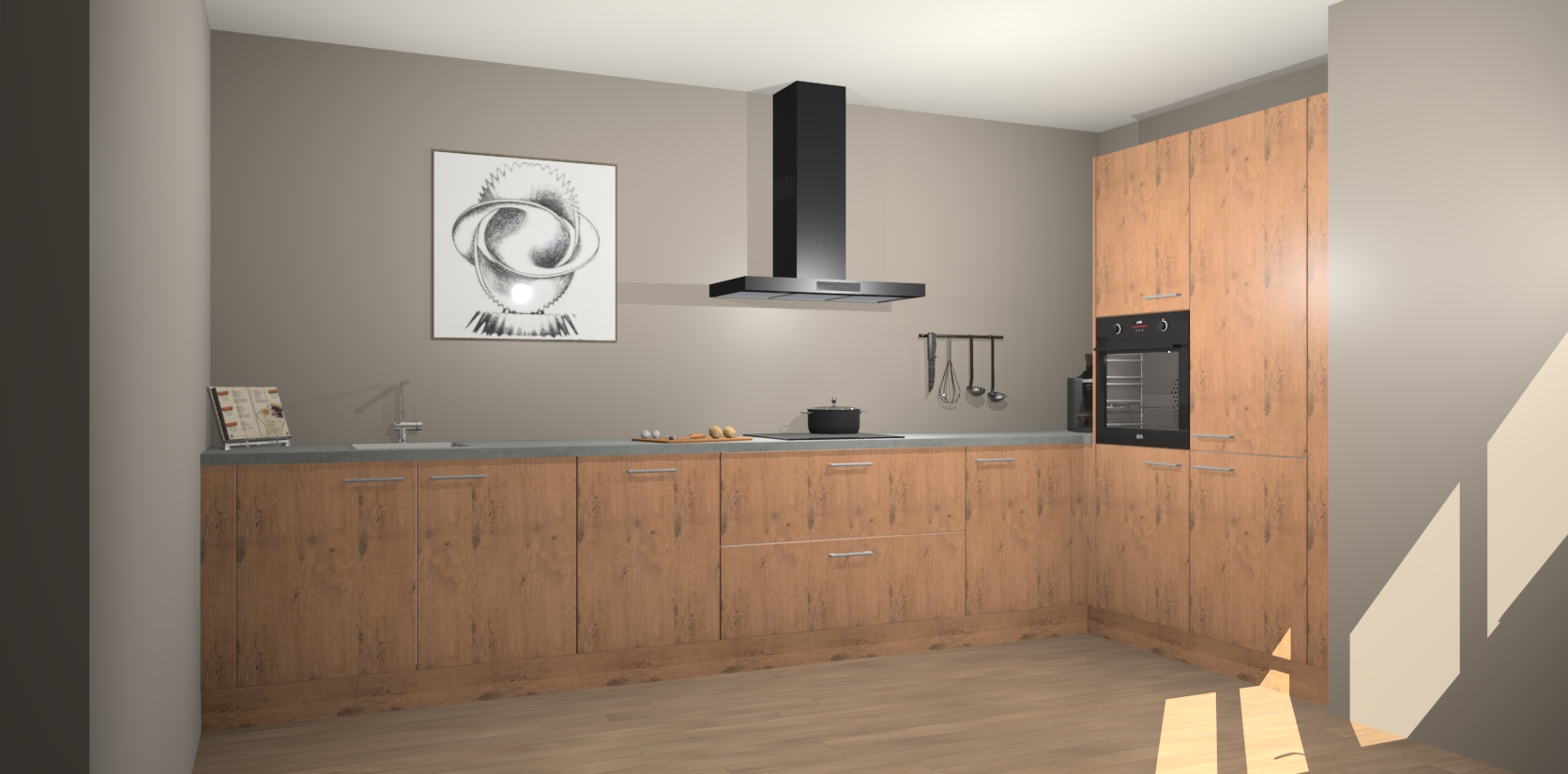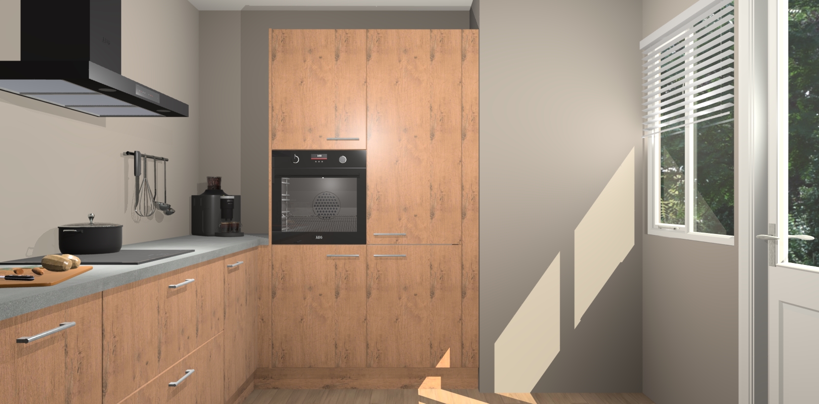 Welkom bij de Astoria Eiken keuken Khao Lak. Deze prachtige keuken zal de komende jaren het middelpunt van de belangstelling in uw huis zijn. Uitgerust met vijf inbouwapparaten komt u nooit kookgereedschap tekort. Bovendien geeft de warme houtlook elke ruimte een uitnodigende en tijdloze uitstraling.