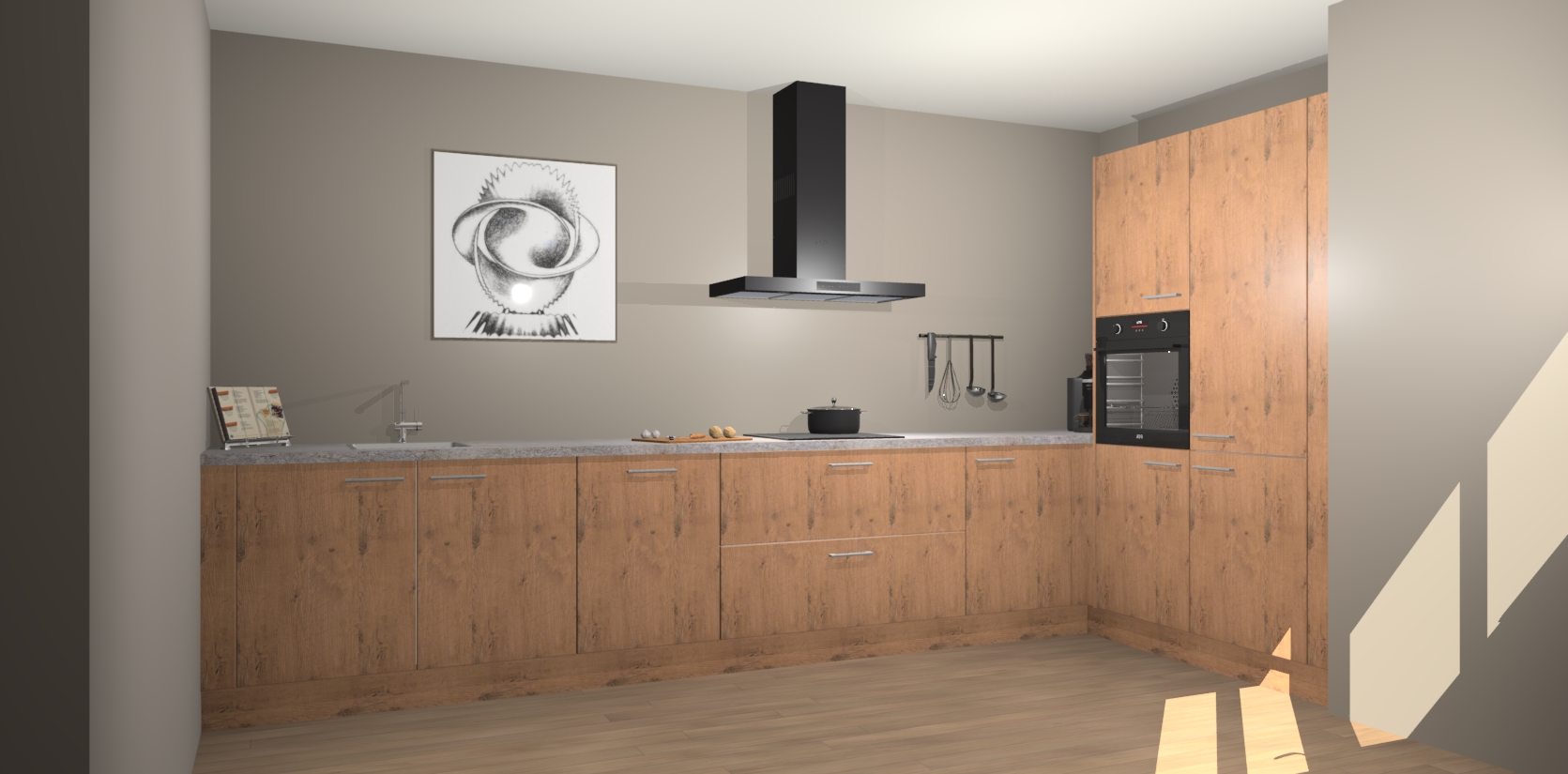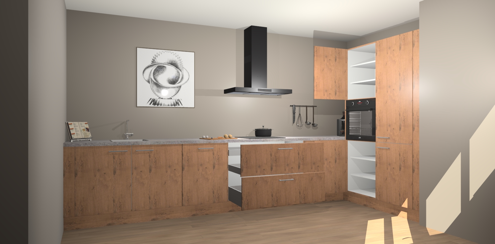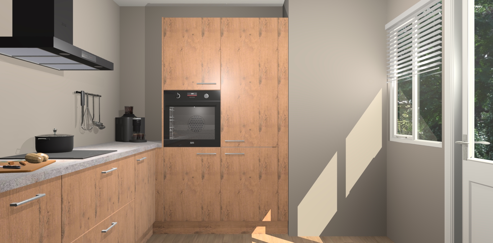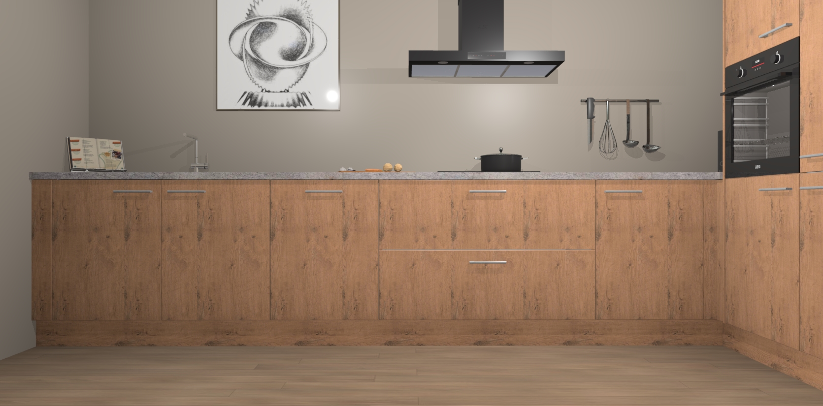 Welkom bij de Astoria Eiken keuken Khao Lak. Deze prachtige keuken zal de komende jaren het middelpunt van de belangstelling in uw huis zijn. Uitgerust met vijf inbouwapparaten komt u nooit kookgereedschap tekort. Bovendien geeft de warme houtlook elke ruimte een uitnodigende en tijdloze uitstraling.
