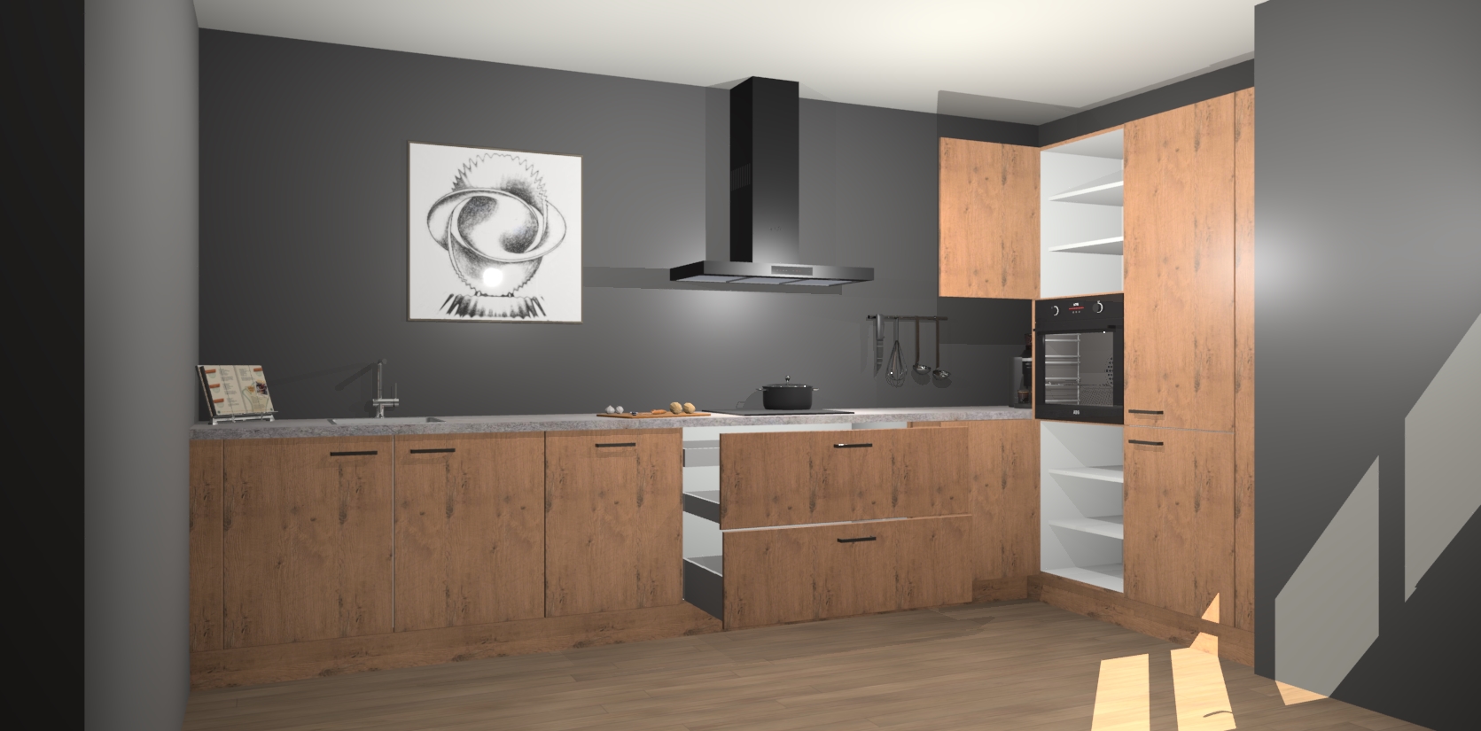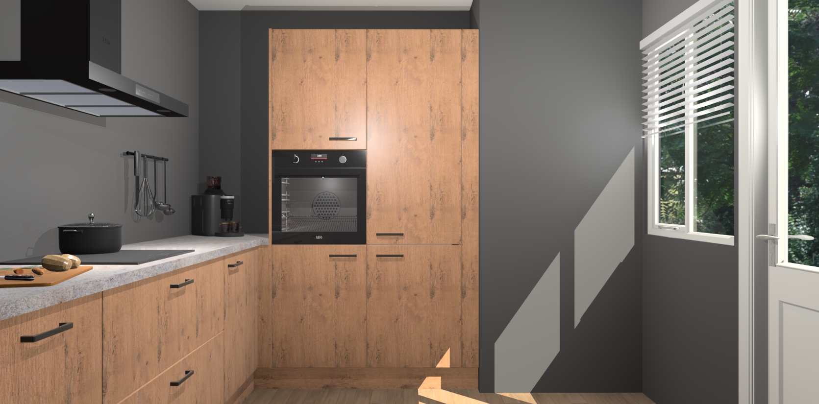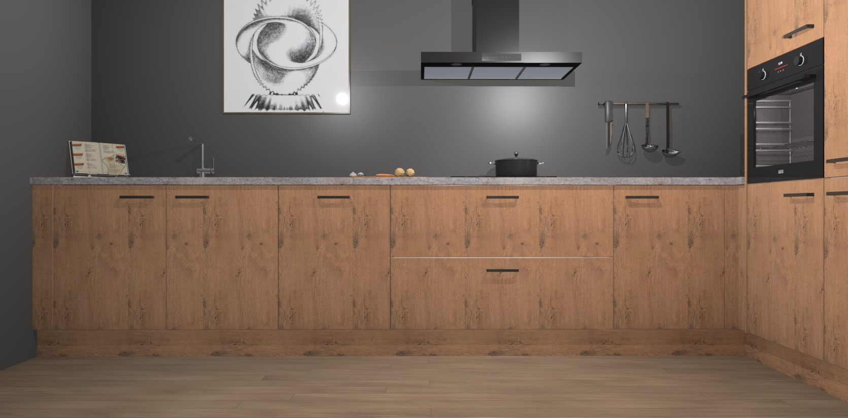 Welkom bij de Astoria Eiken keuken Khao Lak. Deze prachtige keuken zal de komende jaren het middelpunt van de belangstelling in uw huis zijn. Uitgerust met vijf inbouwapparaten komt u nooit kookgereedschap tekort. Bovendien geeft de warme houtlook elke ruimte een uitnodigende en tijdloze uitstraling.