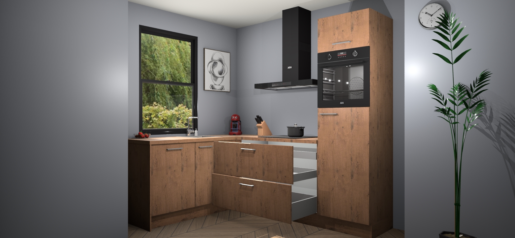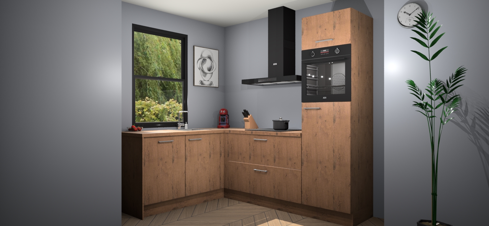 Deze prachtige hoekkeuken heeft alle benodigdheden om uw droomkook- en eetruimte compleet te maken. De Astoria Eiken kasten bieden een echo van raffinement, terwijl de 5 inbouwapparaten genoeg opties bieden voor het bereiden van heerlijke maaltijden. De oven, inductiekookplaat, afzuigkap, vaatwasser en koelkast zorgen ervoor dat u tijd in de keuken zo efficiënt mogelijk verloopt, terwijl ze ook dat extra vleugje luxe bieden.