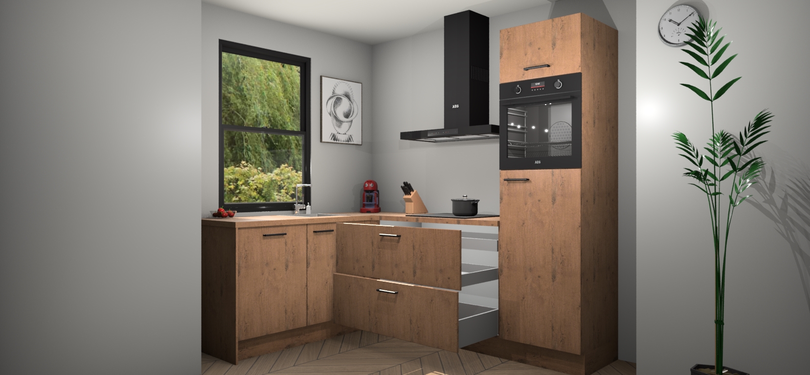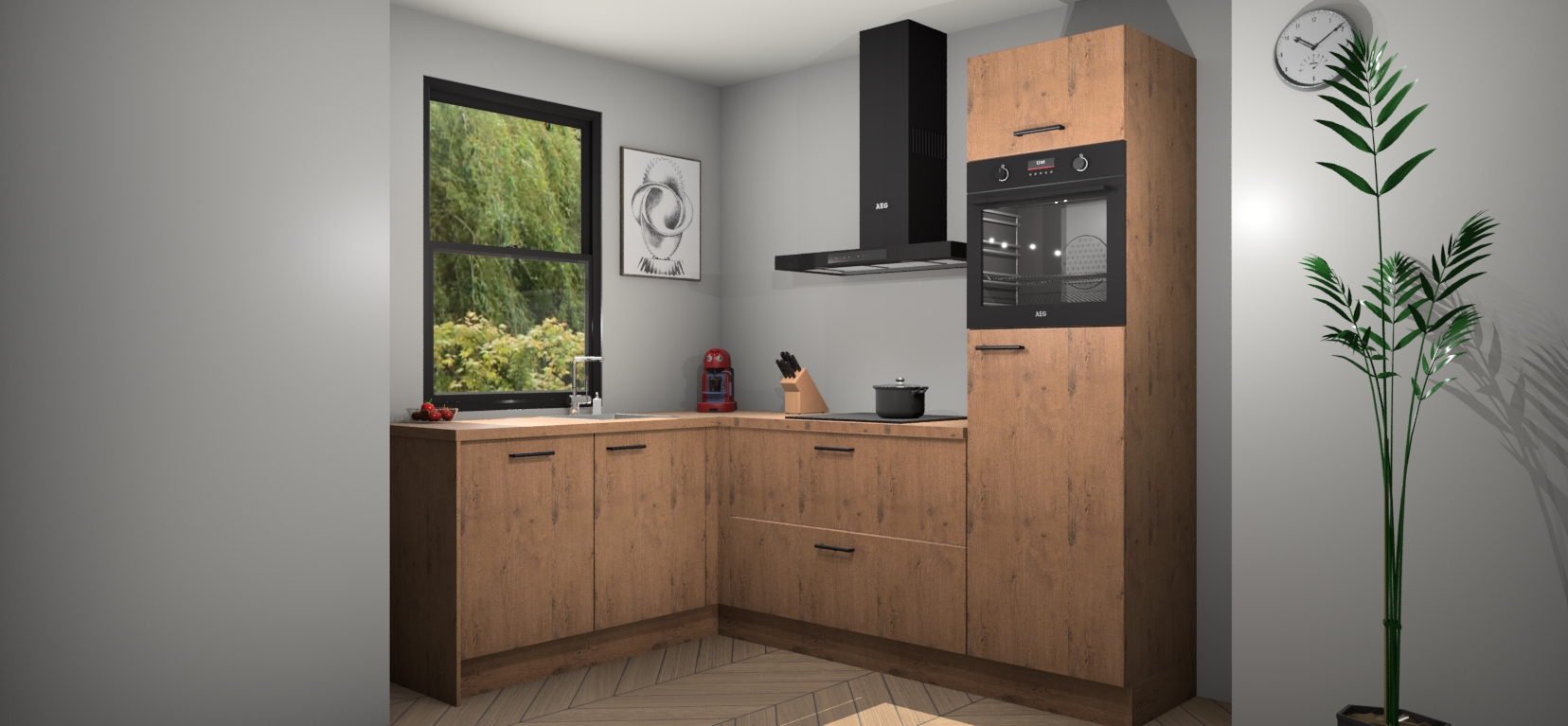 Deze prachtige hoekkeuken heeft alle benodigdheden om uw droomkook- en eetruimte compleet te maken. De Astoria Eiken kasten bieden een echo van raffinement, terwijl de 5 inbouwapparaten genoeg opties bieden voor het bereiden van heerlijke maaltijden. De oven, inductiekookplaat, afzuigkap, vaatwasser en koelkast zorgen ervoor dat u tijd in de keuken zo efficiënt mogelijk verloopt, terwijl ze ook dat extra vleugje luxe bieden.