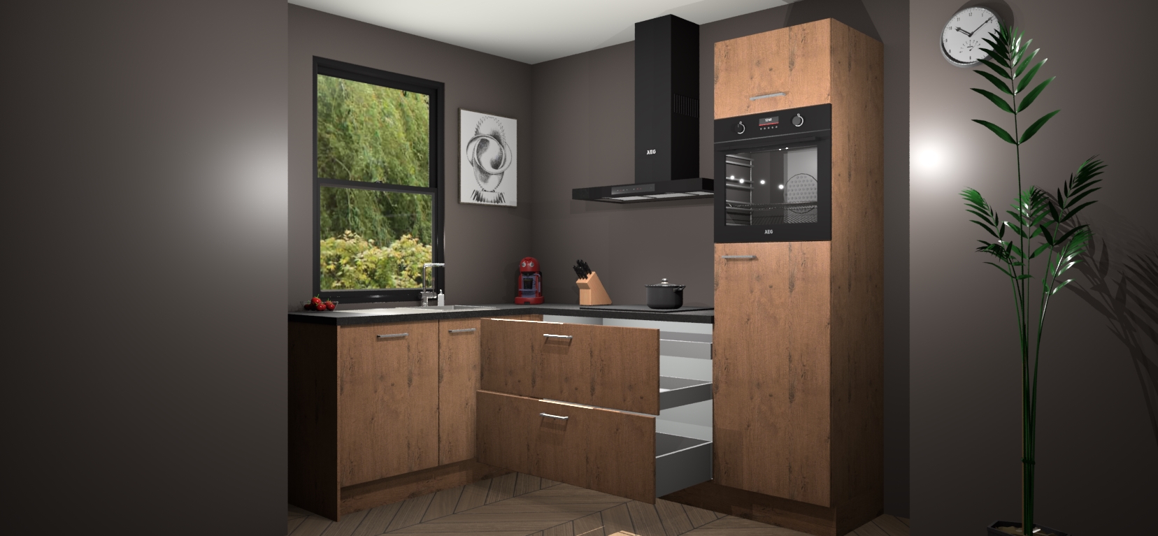 Deze prachtige hoekkeuken heeft alle benodigdheden om uw droomkook- en eetruimte compleet te maken. De Astoria Eiken kasten bieden een echo van raffinement, terwijl de 5 inbouwapparaten genoeg opties bieden voor het bereiden van heerlijke maaltijden. De oven, inductiekookplaat, afzuigkap, vaatwasser en koelkast zorgen ervoor dat u tijd in de keuken zo efficiënt mogelijk verloopt, terwijl ze ook dat extra vleugje luxe bieden.