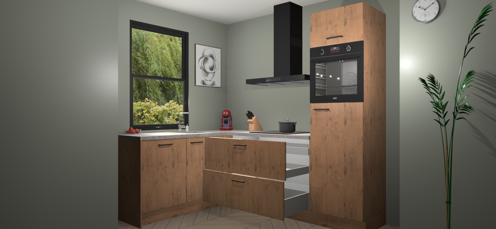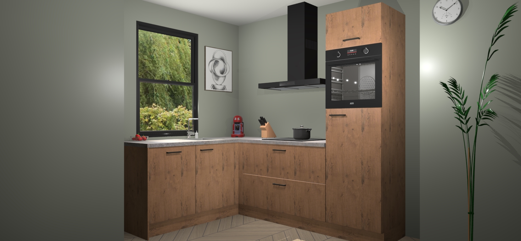 Deze prachtige hoekkeuken heeft alle benodigdheden om uw droomkook- en eetruimte compleet te maken. De Astoria Eiken kasten bieden een echo van raffinement, terwijl de 5 inbouwapparaten genoeg opties bieden voor het bereiden van heerlijke maaltijden. De oven, inductiekookplaat, afzuigkap, vaatwasser en koelkast zorgen ervoor dat u tijd in de keuken zo efficiënt mogelijk verloopt, terwijl ze ook dat extra vleugje luxe bieden.