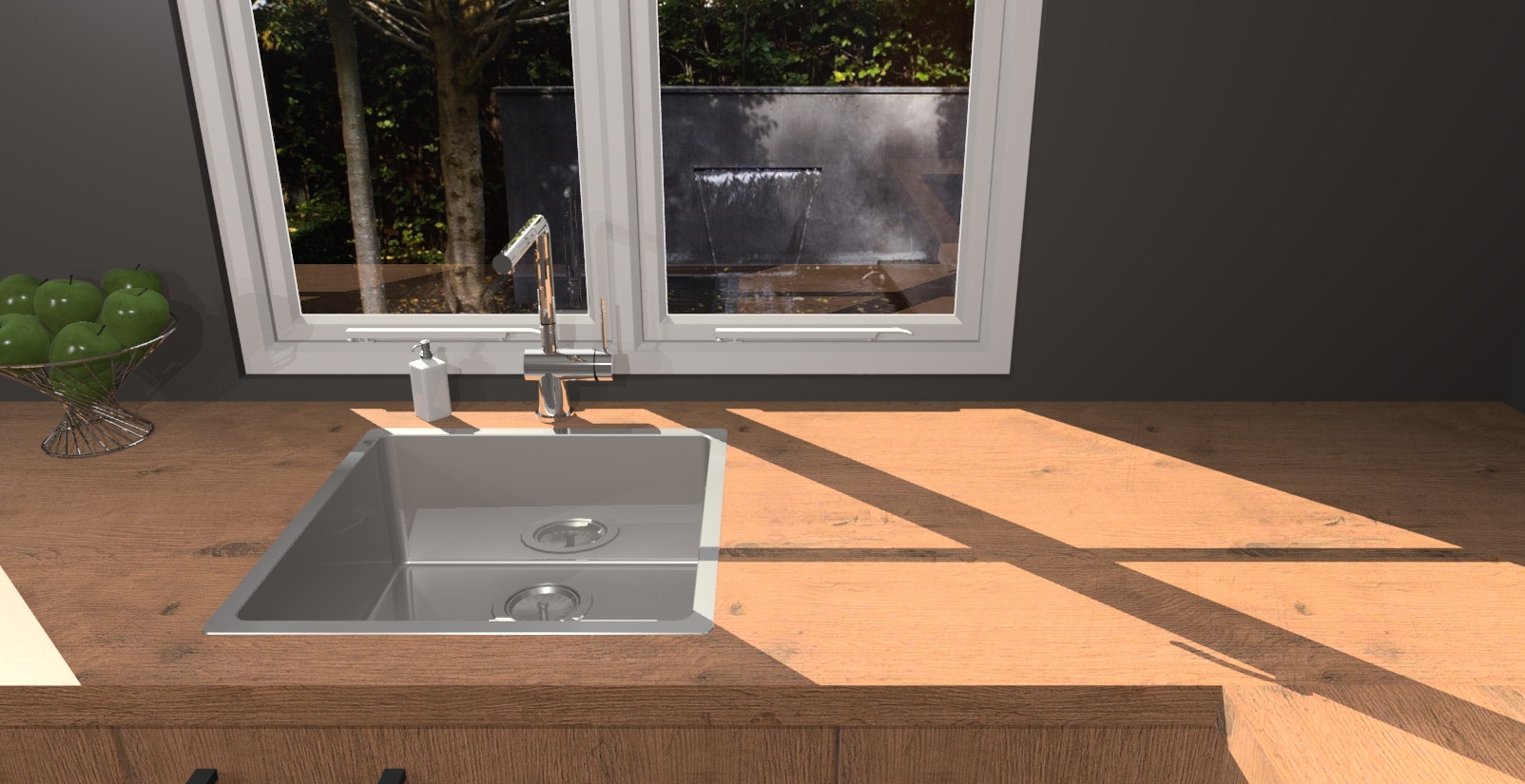 - De spoelbak is nog niet in gevreesd. Dit dient tijdens het werk gedaan te worden