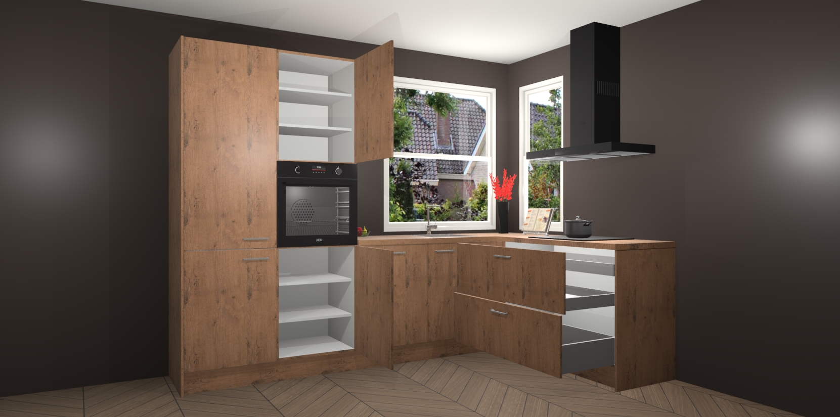 Elke Astoria Eiken keuken Kotor wordt compleet geleverd met vijf inbouwapparaten, waaronder een oven, inductiekookplaat, afzuigkap, vaatwasser en koelkast. Sterker nog - indien gewenst kunt u deze apparaten na bestelling eenvoudig upgraden naar AEG! Extra functies zijn onder andere soft close deuren voor extra gemak, en elke kast wordt voor gemonteerd geleverd zodat u sneller van uw nieuwe keuken kunt genieten.