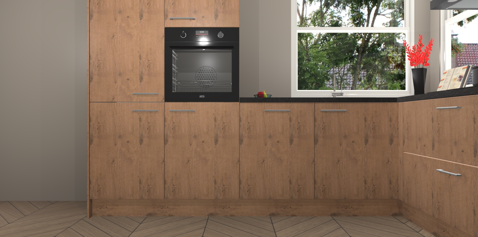 Elke Astoria Eiken keuken Kotor wordt compleet geleverd met vijf inbouwapparaten, waaronder een oven, inductiekookplaat, afzuigkap, vaatwasser en koelkast. Sterker nog - indien gewenst kunt u deze apparaten na bestelling eenvoudig upgraden naar AEG! Extra functies zijn onder andere soft close deuren voor extra gemak, en elke kast wordt voor gemonteerd geleverd zodat u sneller van uw nieuwe keuken kunt genieten.