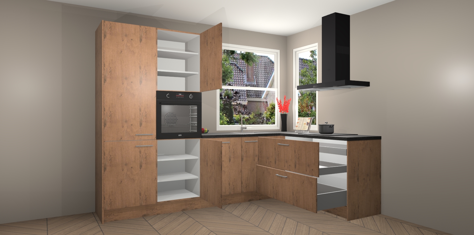 Het is tijd om halsoverkop verliefd te worden op uw droomkeuken, en de Astoria Eiken keuken Kotor is precies wat u nodig heeft! Met een moderne, tijdloze constructie en een mix van prachtig design zal deze luxe hoekkeuken zeker opvallen. Maar laat de schoonheid u niet afleiden van de indrukwekkende functies - want onder dit alles schuilt een onovertroffen hoeveelheid lekkers!