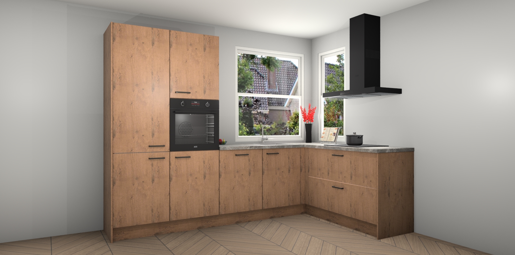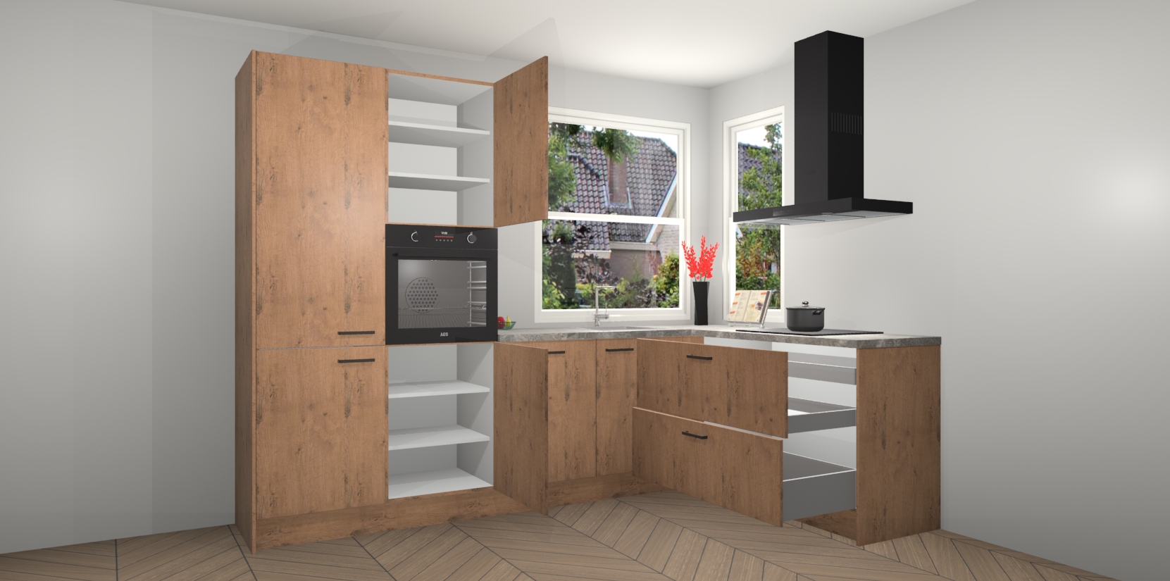 Elke Astoria Eiken keuken Kotor wordt compleet geleverd met vijf inbouwapparaten, waaronder een oven, inductiekookplaat, afzuigkap, vaatwasser en koelkast. Sterker nog - indien gewenst kunt u deze apparaten na bestelling eenvoudig upgraden naar AEG! Extra functies zijn onder andere soft close deuren voor extra gemak, en elke kast wordt voor gemonteerd geleverd zodat u sneller van uw nieuwe keuken kunt genieten.