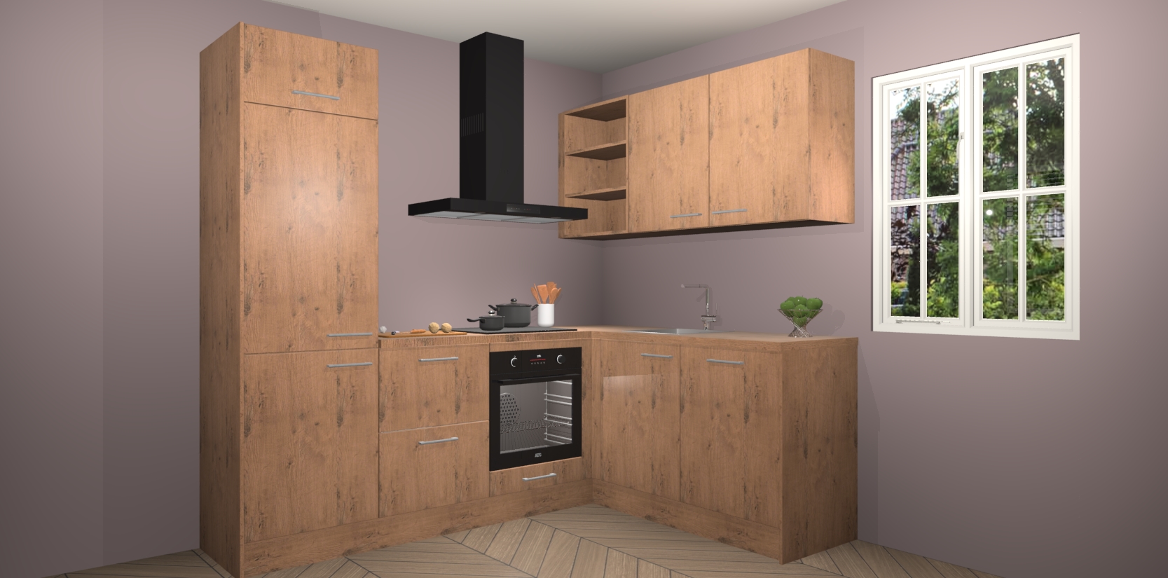 Dit model biedt u voldoende opbergruimte en vijf ingebouwde apparaten: een oven, inductiekookplaat, afzuigkap, vaatwasser en koelkast. Deze apparaten kunnen gemakkelijk worden geüpgrade naar AEG nadat u besteld heeft. De verschillende laden en kastjes bevatten softclose-deuren waardoor ze gezellig dichtvallen met een geruststellend helemaal geruisloos geluid. En dat is nog niet alles! We garanderen ook dat de prijs altijd laag blijft - dus haal nu uw Astoria Eiken keuken Krakau terwijl het kan.