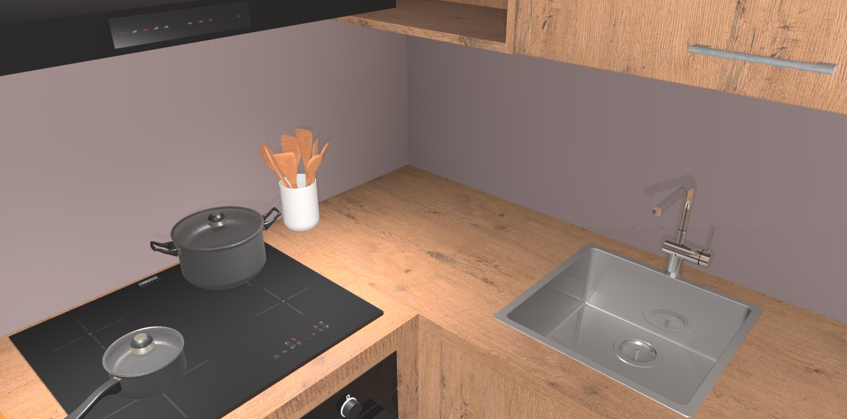 - Uitsparing van kookplaat, spoelbak en kraan dient u zelf te verzorgen.