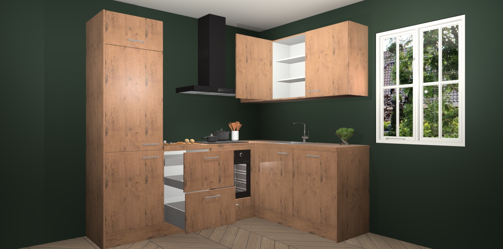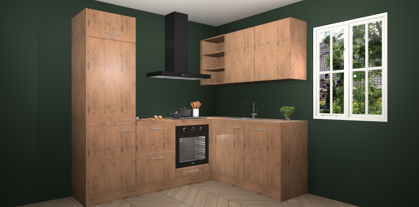 Dit model biedt u voldoende opbergruimte en vijf ingebouwde apparaten: een oven, inductiekookplaat, afzuigkap, vaatwasser en koelkast. Deze apparaten kunnen gemakkelijk worden geüpgrade naar AEG nadat u besteld heeft. De verschillende laden en kastjes bevatten softclose-deuren waardoor ze gezellig dichtvallen met een geruststellend helemaal geruisloos geluid. En dat is nog niet alles! We garanderen ook dat de prijs altijd laag blijft - dus haal nu uw Astoria Eiken keuken Krakau terwijl het kan.