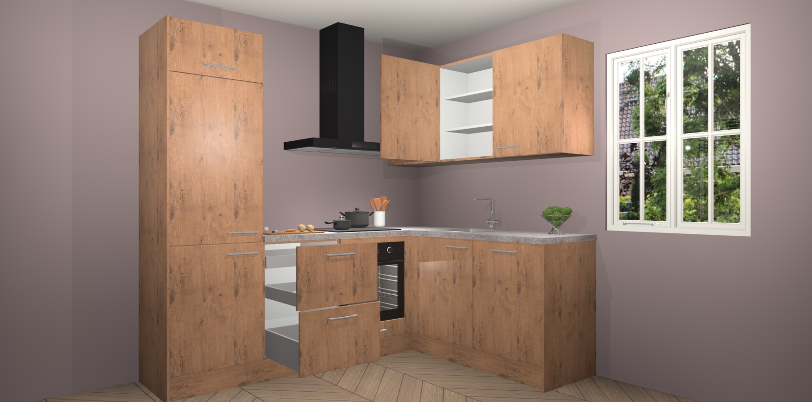 Dit model biedt u voldoende opbergruimte en vijf ingebouwde apparaten: een oven, inductiekookplaat, afzuigkap, vaatwasser en koelkast. Deze apparaten kunnen gemakkelijk worden geüpgrade naar AEG nadat u besteld heeft. De verschillende laden en kastjes bevatten softclose-deuren waardoor ze gezellig dichtvallen met een geruststellend helemaal geruisloos geluid. En dat is nog niet alles! We garanderen ook dat de prijs altijd laag blijft - dus haal nu uw Astoria Eiken keuken Krakau terwijl het kan.