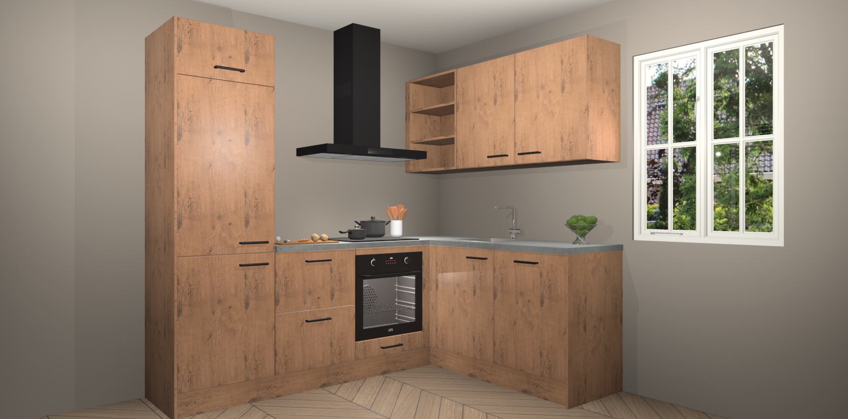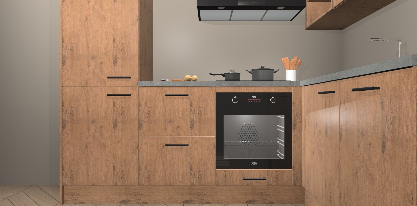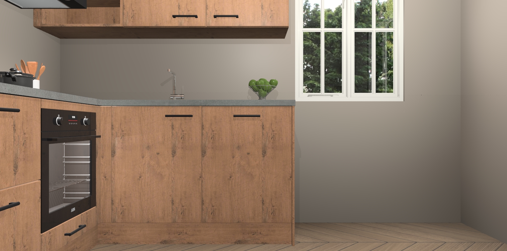 Dit model biedt u voldoende opbergruimte en vijf ingebouwde apparaten: een oven, inductiekookplaat, afzuigkap, vaatwasser en koelkast. Deze apparaten kunnen gemakkelijk worden geüpgrade naar AEG nadat u besteld heeft. De verschillende laden en kastjes bevatten softclose-deuren waardoor ze gezellig dichtvallen met een geruststellend helemaal geruisloos geluid. En dat is nog niet alles! We garanderen ook dat de prijs altijd laag blijft - dus haal nu uw Astoria Eiken keuken Krakau terwijl het kan.