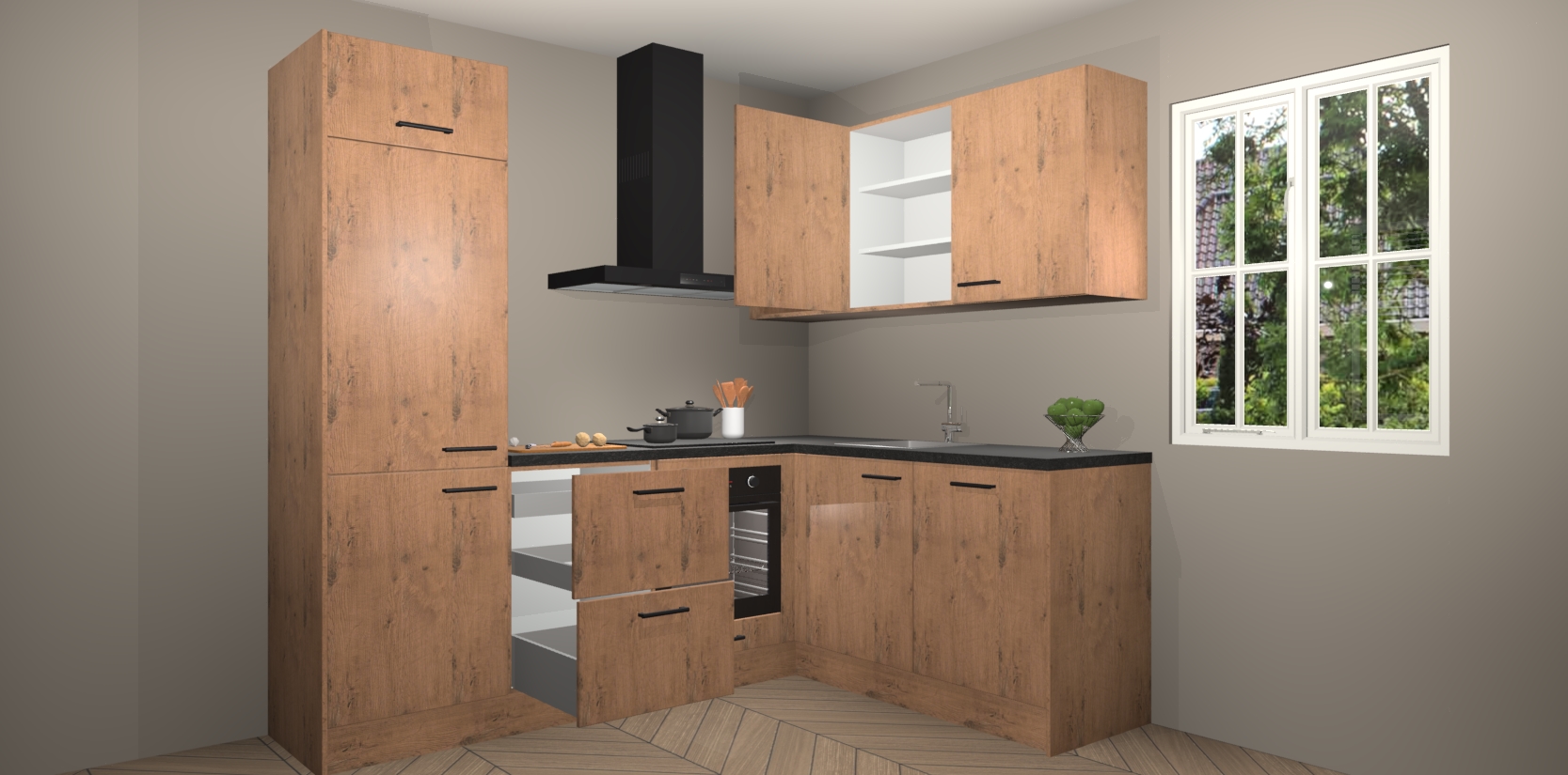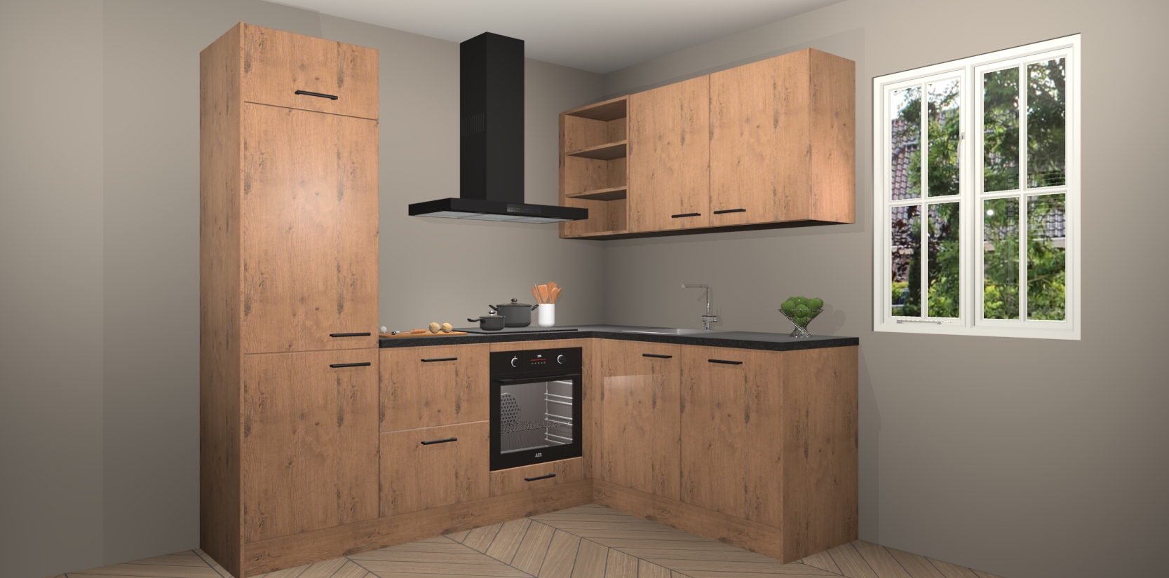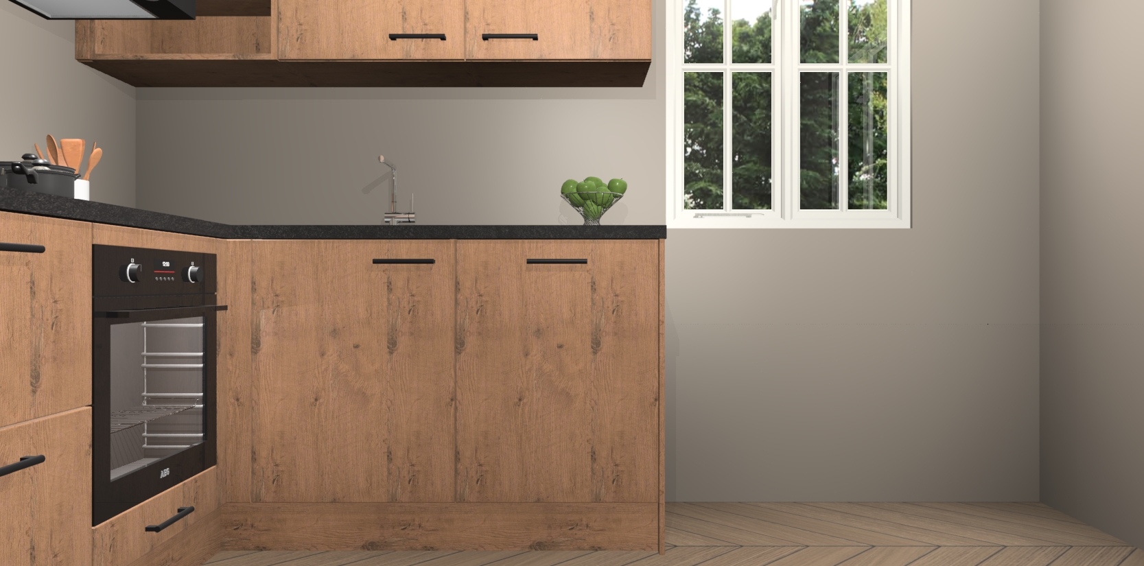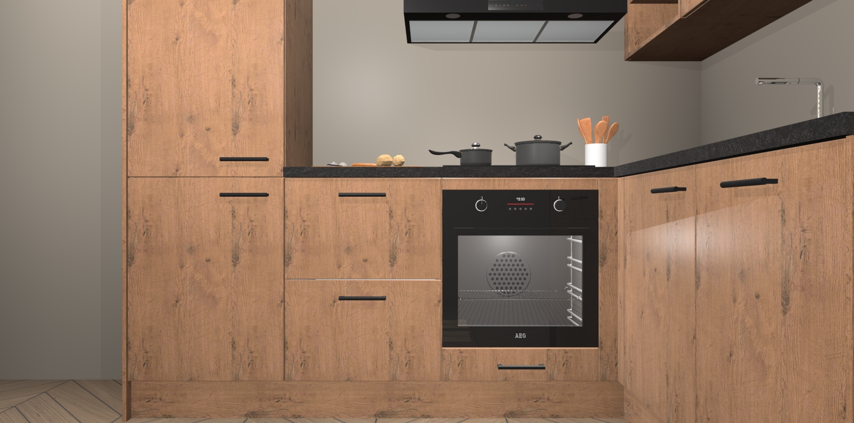 Dit model biedt u voldoende opbergruimte en vijf ingebouwde apparaten: een oven, inductiekookplaat, afzuigkap, vaatwasser en koelkast. Deze apparaten kunnen gemakkelijk worden geüpgrade naar AEG nadat u besteld heeft. De verschillende laden en kastjes bevatten softclose-deuren waardoor ze gezellig dichtvallen met een geruststellend helemaal geruisloos geluid. En dat is nog niet alles! We garanderen ook dat de prijs altijd laag blijft - dus haal nu uw Astoria Eiken keuken Krakau terwijl het kan.