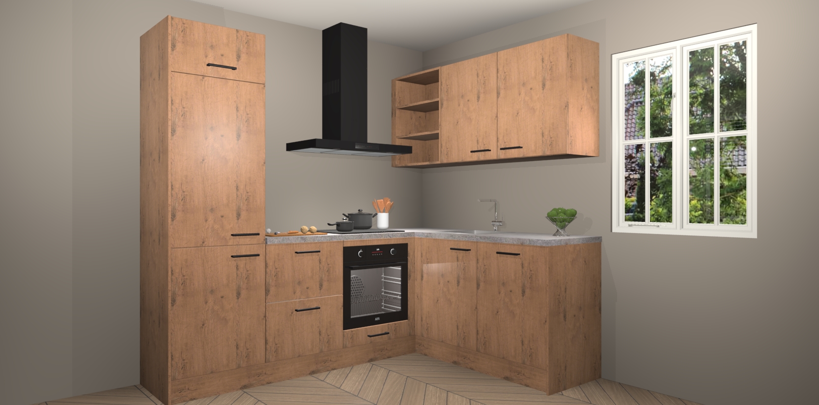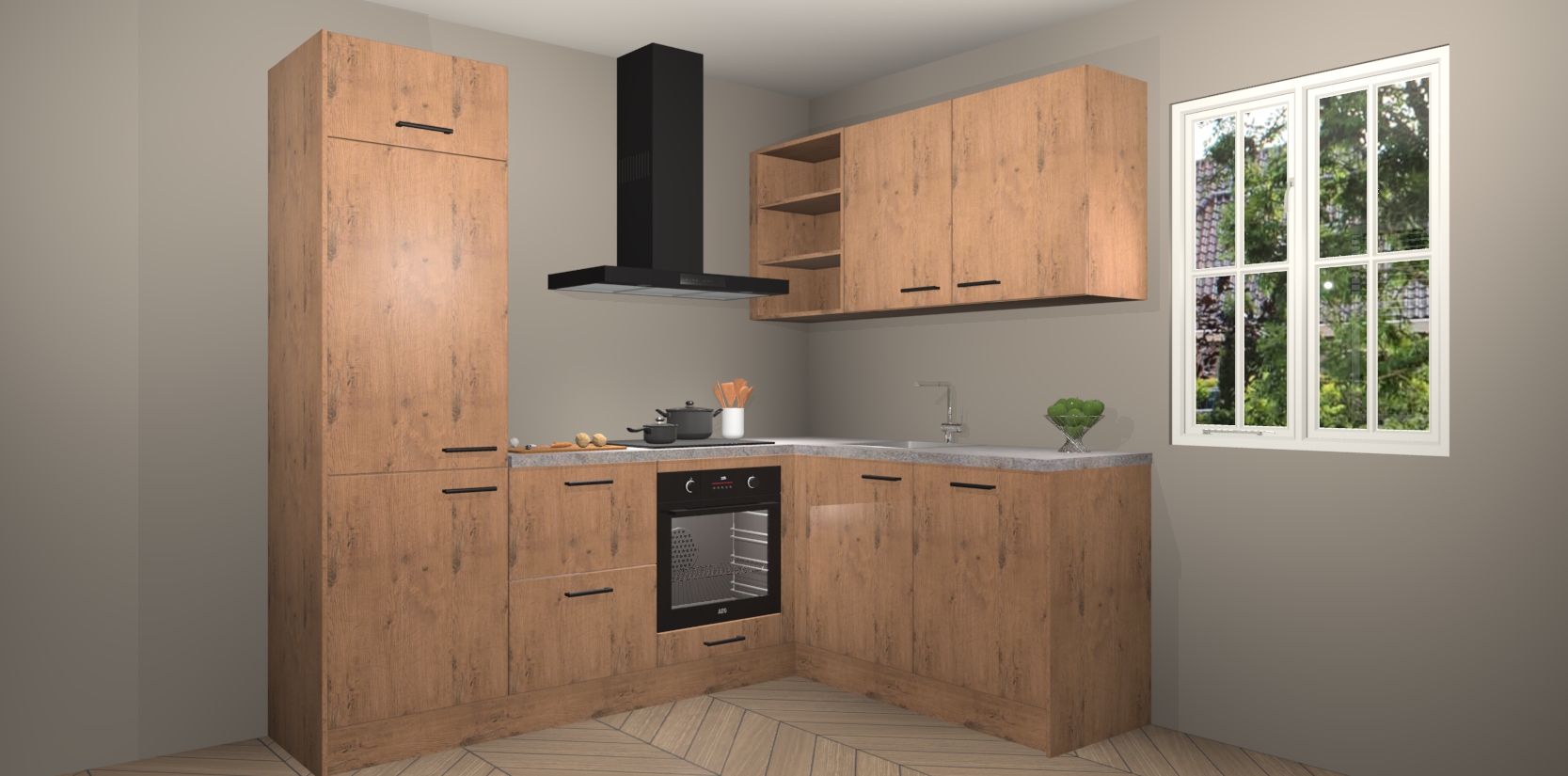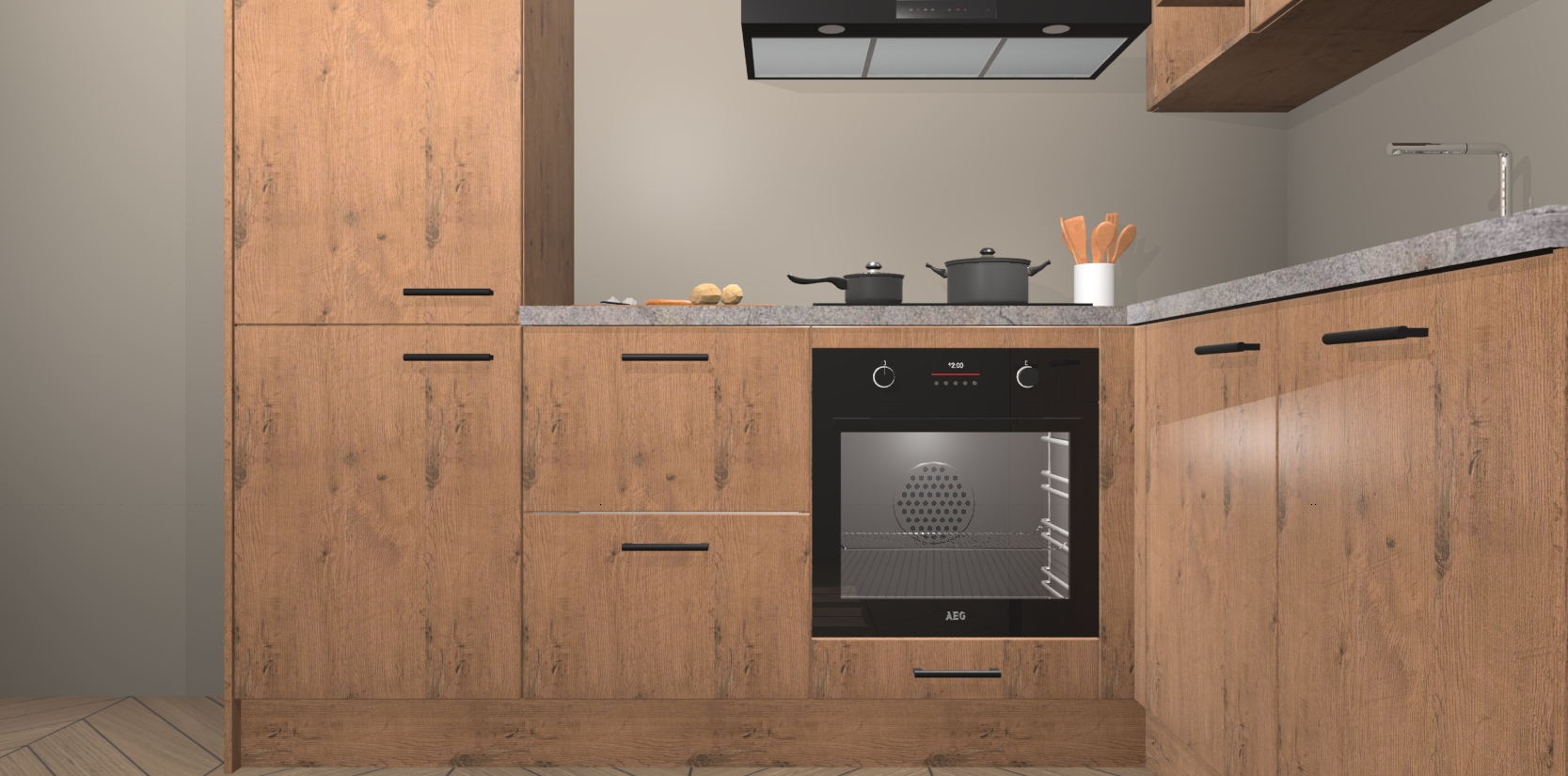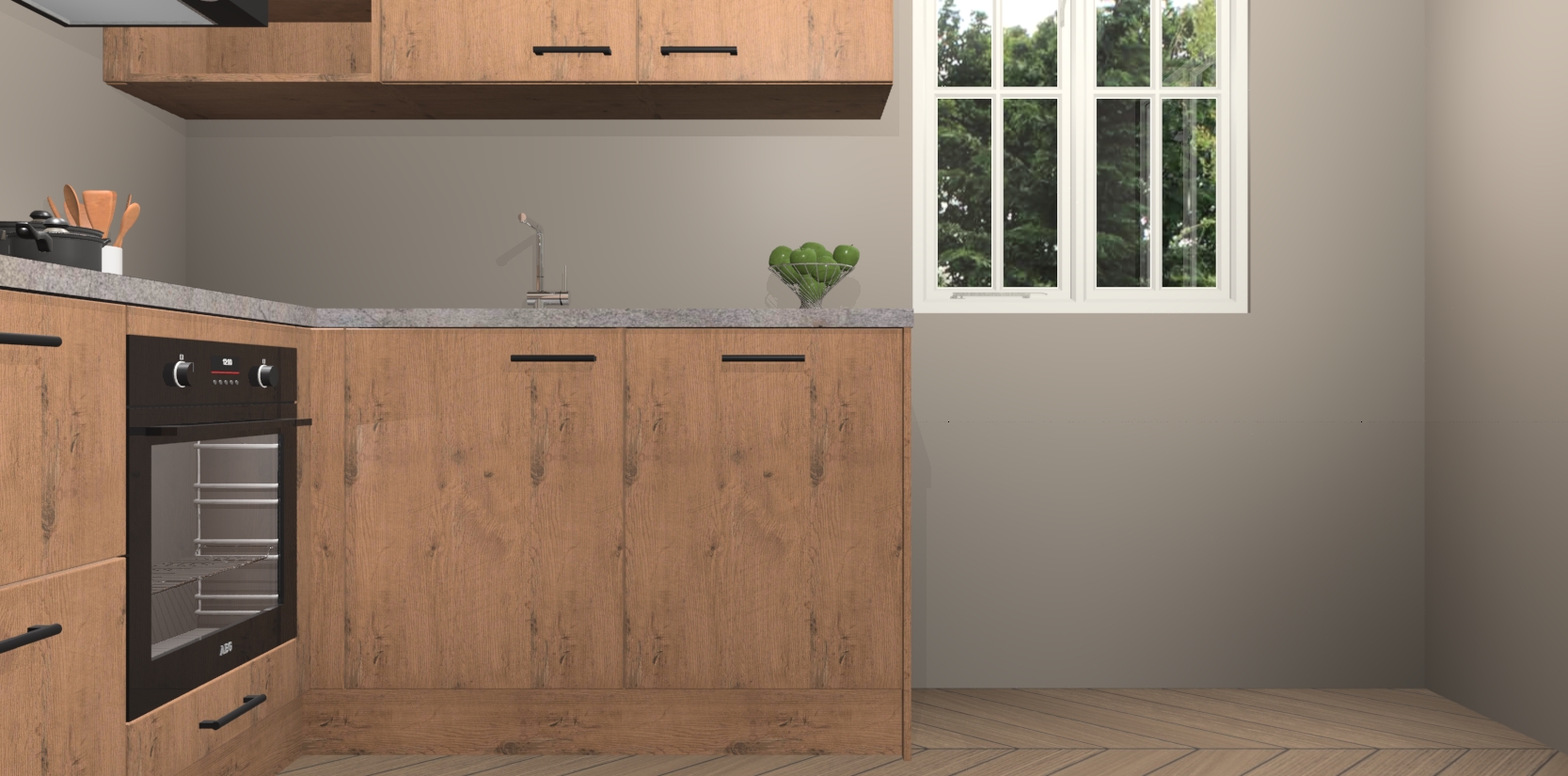 Dit model biedt u voldoende opbergruimte en vijf ingebouwde apparaten: een oven, inductiekookplaat, afzuigkap, vaatwasser en koelkast. Deze apparaten kunnen gemakkelijk worden geüpgrade naar AEG nadat u besteld heeft. De verschillende laden en kastjes bevatten softclose-deuren waardoor ze gezellig dichtvallen met een geruststellend helemaal geruisloos geluid. En dat is nog niet alles! We garanderen ook dat de prijs altijd laag blijft - dus haal nu uw Astoria Eiken keuken Krakau terwijl het kan.
