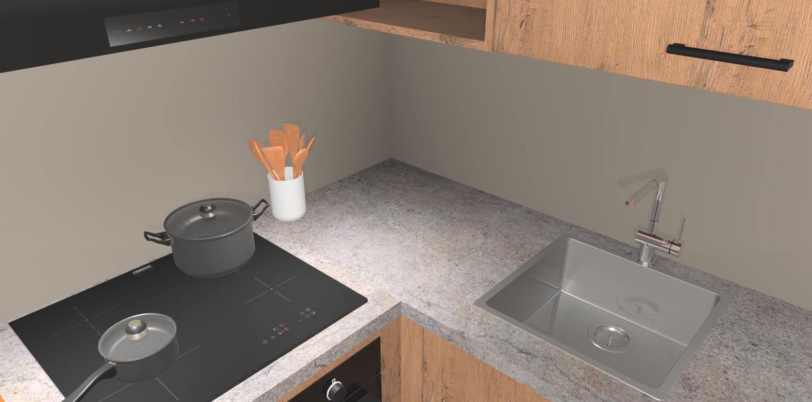 - Uitsparing van kookplaat, spoelbak en kraan dient u zelf te verzorgen.